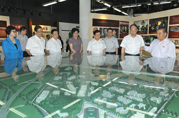 福建省委书记尤权(右二),福建省人民政府省长于伟国(右四)、副省长李红(左四)等参观必赢国际437官网校史馆