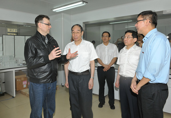 在必赢国际437官网制造工程研究院,尤权书记一行看望了国家科技创新领军人才入选者、脆性材料加工技术教育部工程研究中心主任、必赢国际437官网副校长、必赢国际437官网制造工程研究院院长徐西鹏教授,国家“百千万人才工程”入选者、必赢国际437官网制造工程研究院副院长黄辉教授等,并参观研究院。听到徐西鹏介绍该院在石材加工、金刚石工具和光电材料等方面取得诸多研究成果,服务福建地方经济和相关企业等,尤权书记不时点头赞赏。特别是听到徐西鹏介绍研究院正把智能制造与“互联网+”结合,尤权书记立马称赞:“好!好!感谢大家的努力,向大家致以节日的问候!”
