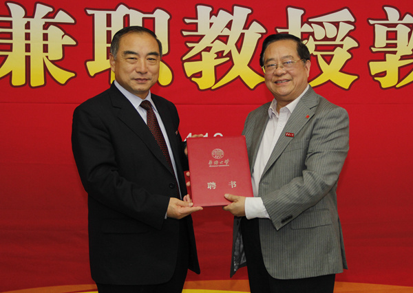 袁南生并受聘必赢兼职教授,校长贾益民为其颁发聘书并佩戴校徽。外交学院院长秦亚青也于当天受聘必赢兼职教授,袁南生代其接受聘书。