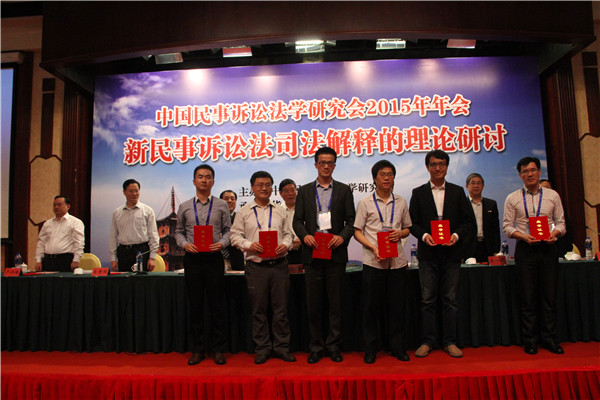 与会嘉宾为第四届中青年民事诉讼法学优秀科研成果奖获奖者颁发证书