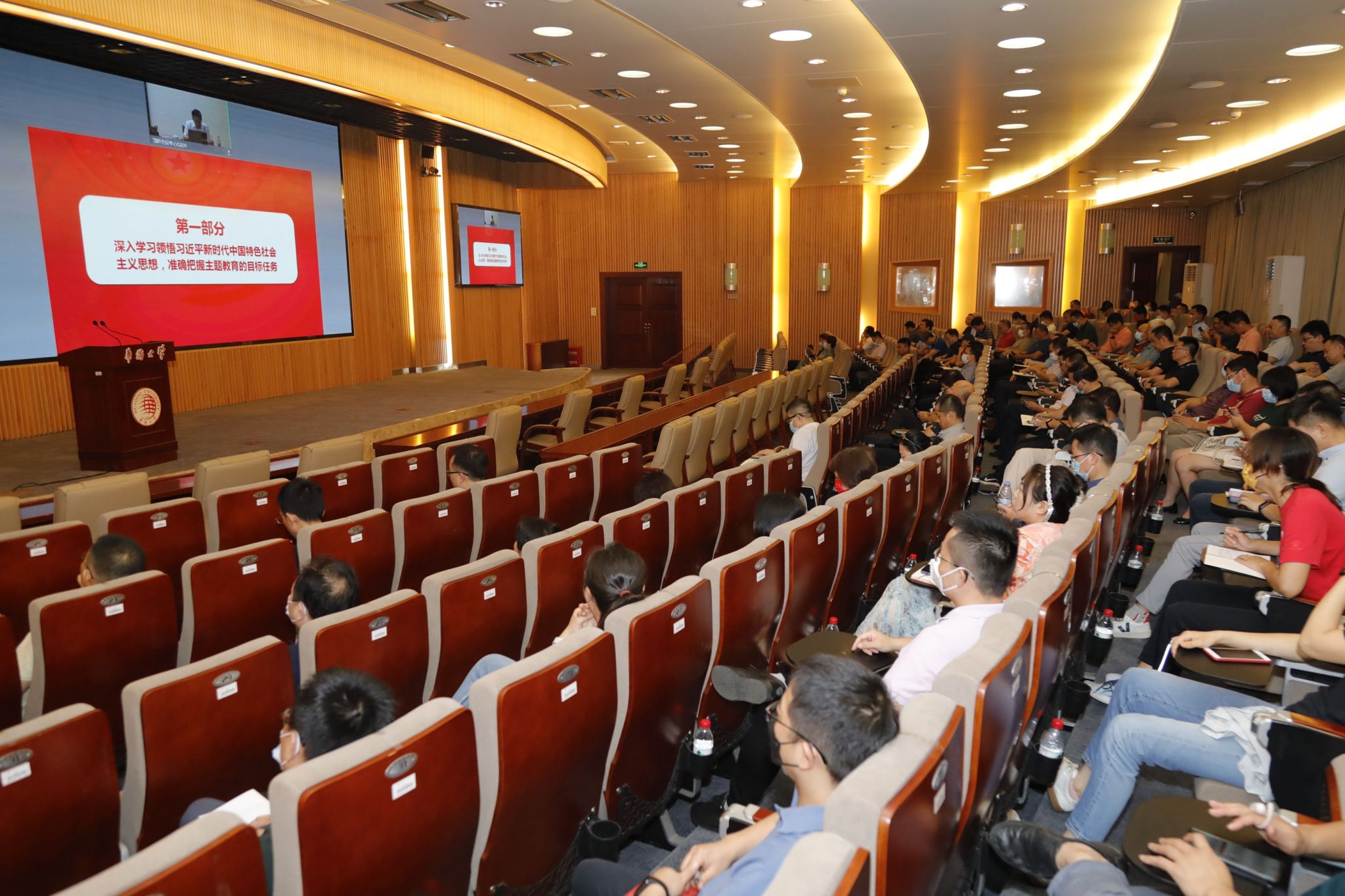 6月29日下午,校党委书记、主题教育领导小组组长徐西鹏在王源兴国际会议中心201室为学校中层干部和教师党支部书记作题为《深入开展主题教育 推进学校高质量发展》专题党课。党课由校长吴剑平主持,副校长林宏宇参加学习。