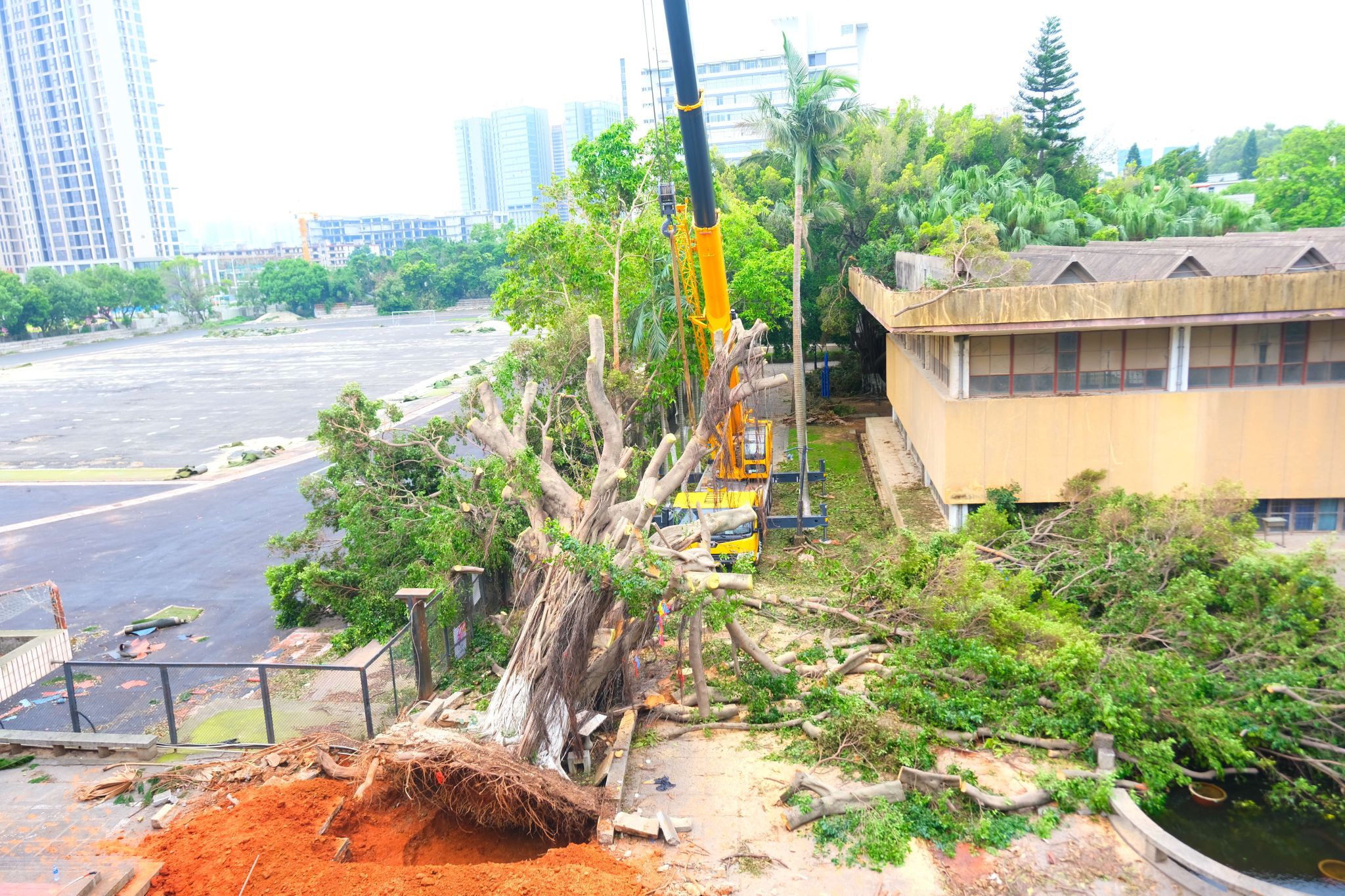 另据学校绿化中心工作人员介绍,本次台风中受伤的诸多树木,如华园大道两侧与学校共同成长的柠檬桉,见证每一届毕业生的凤凰木,深受师生校友喜爱的美丽的异木棉、洋紫荆等,都将陆续接受生命鉴定和治疗。对于被台风吹断的树木,将受伤、受损的枝干截枝即可。而对于部分被连根拔起的树木,则需要专业诊断树木根系的受损情况,若根系保存完整,只需重新种回原地,在短期内对其“挂瓶”治疗,并在三个月内加强补充营养。其中,行道树、绿化树从产地移入后,只能一次种植,不能移动。若受伤的树木还有成活的几率,将立即原地种回。