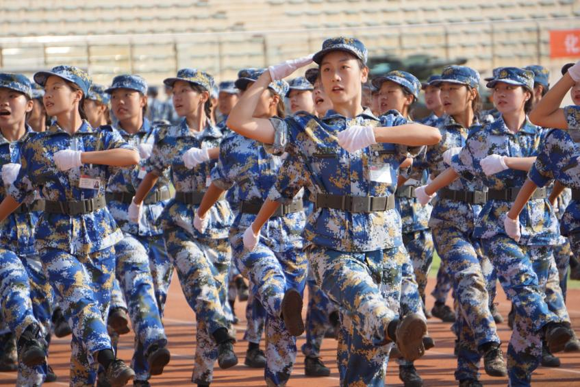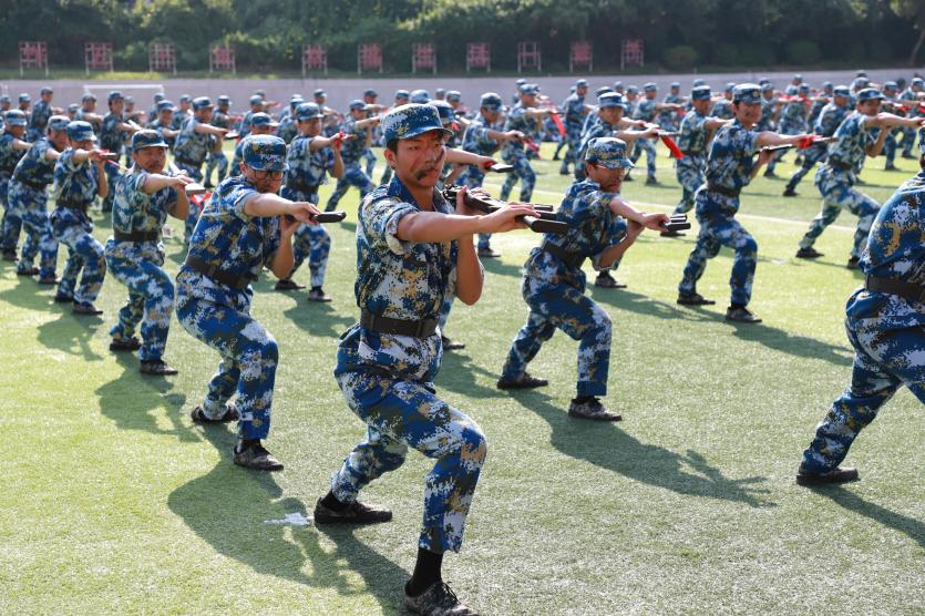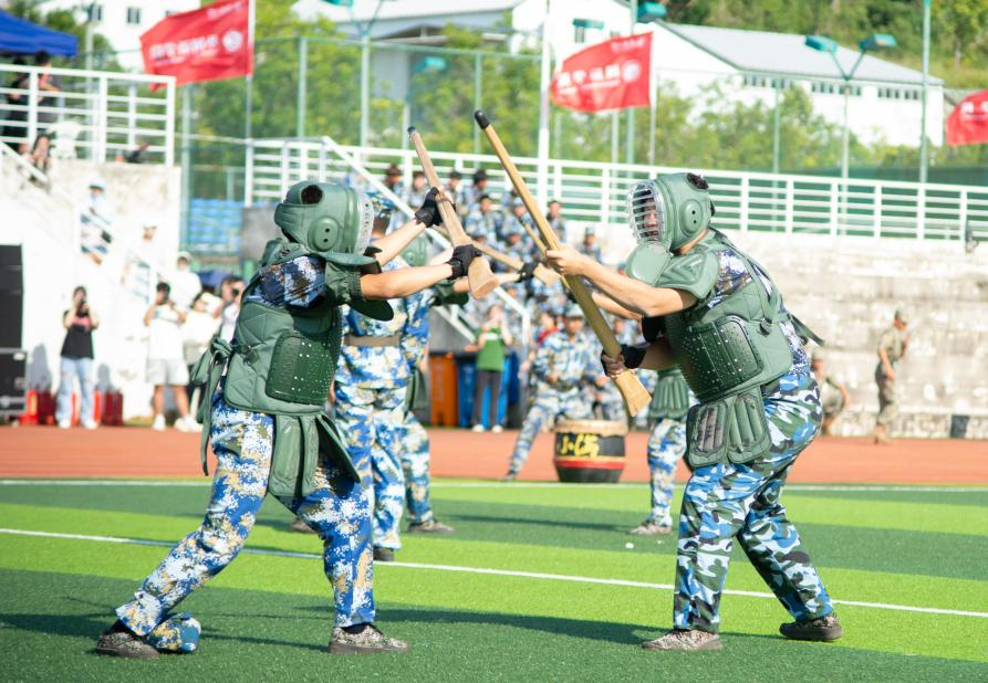 训少年之体魄,强中华之脊梁。运动场上,各学生方阵依次正步经过主席台,整齐划一的步伐,流畅有力的摆臂,刚毅坚定的眼神,铿锵有力的口号……展现着华大学子斗志昂扬的精神风貌,赢得看台上老师和教官的热烈掌声。