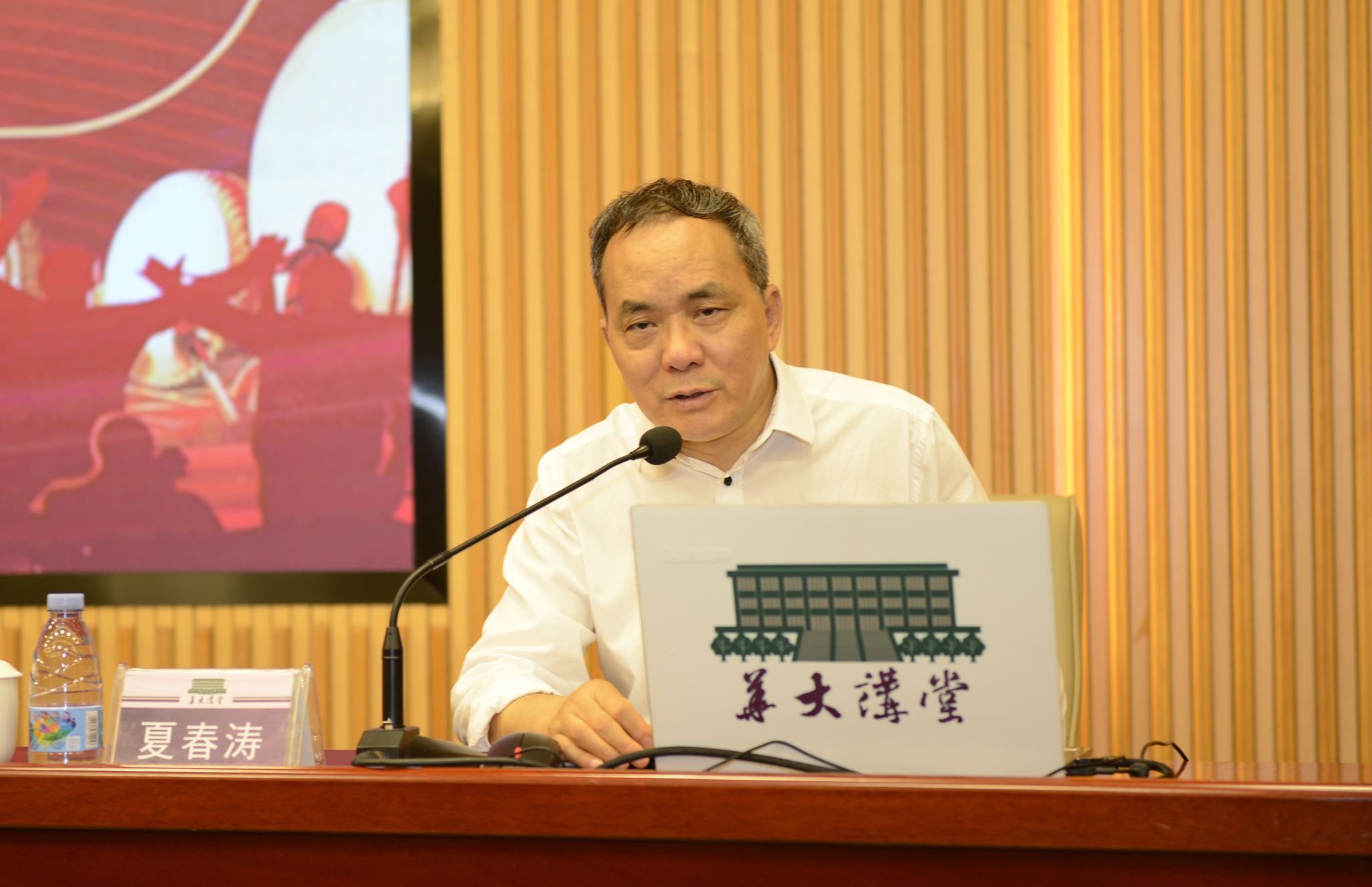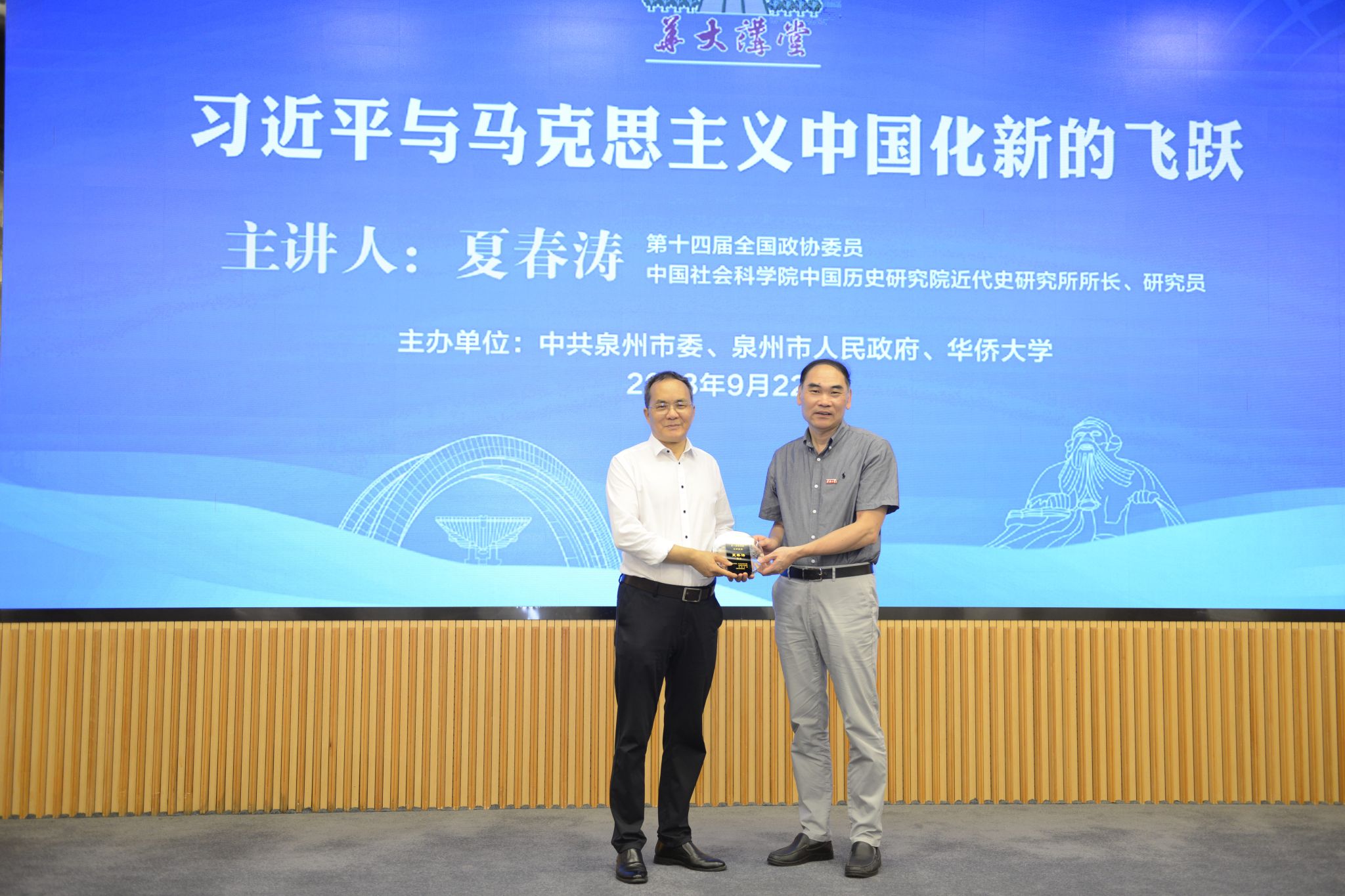 讲座前,副校长王秀勇为夏春涛颁授“华大讲堂”主讲嘉宾纪念牌。宣传部负责人主持报告会。