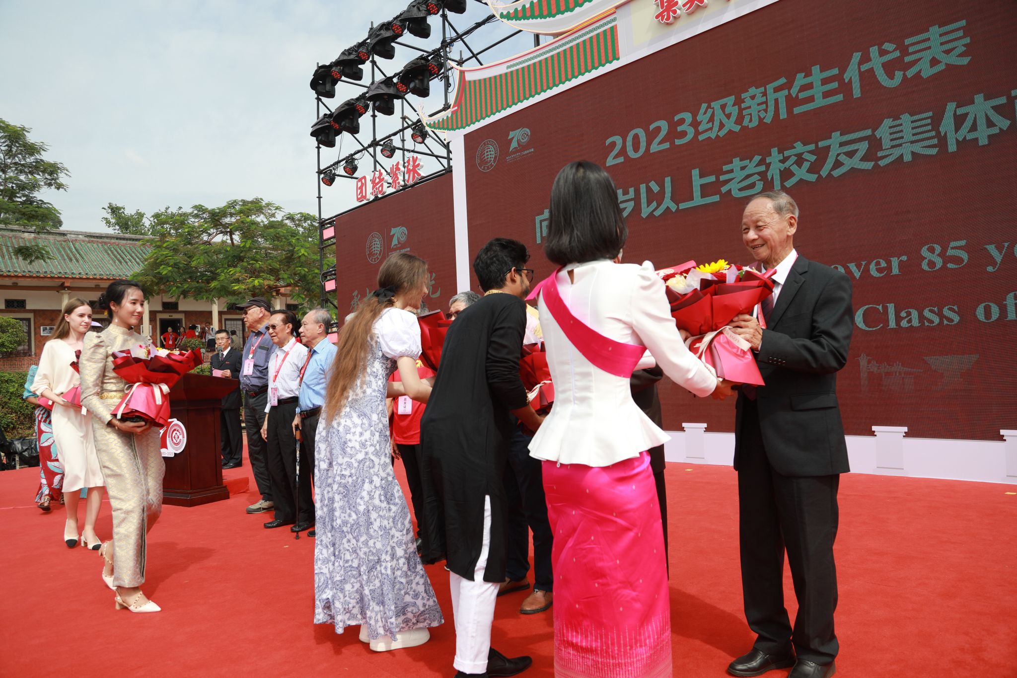 “我出生于印度尼西亚万隆一个华侨家庭。1960年,海外发生排华风潮,大批侨生涌入侨校学习,学生骤增,又适逢国内三年困难时期,师生经常吃不饱。”1960级香港校友、香港金轮集团董事长王钦贤代表校友发言,回忆在母校求学的难忘岁月。他说,“当时,母校的领导和老师们对归国侨生关怀备至使我们深切感受到生活在祖国的温暖,从而激发大家在思想、学习等方面取得更大的进步。”