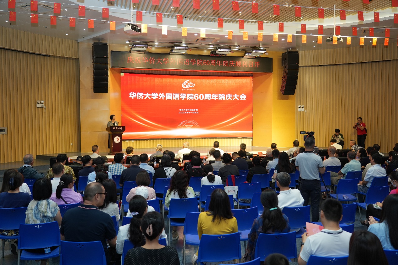 吴剑平在致辞中对外国语学院60年来取得的办学成绩给予充分肯定,就学院发展提出三点希望:一是深入学习贯彻党的二十大和习近平总书记重要指示精神,按照“顶天、立地、树人”发展思路,坚持以侨立校、为侨服务,结合学科专业特点,促进中外文明交流互鉴。二是全面贯彻党的教育方针,落实立德树人根本任务,紧紧抓住获批一级学科博士点的机遇,重视多语种布局,切实加强人才队伍建设,促进学生会通中外、全面发展。三是深化改革创新,探索外语学科建设规律,提高基础课教学质量,积极引入现代信息技术,促进学院内涵式高质量发展。