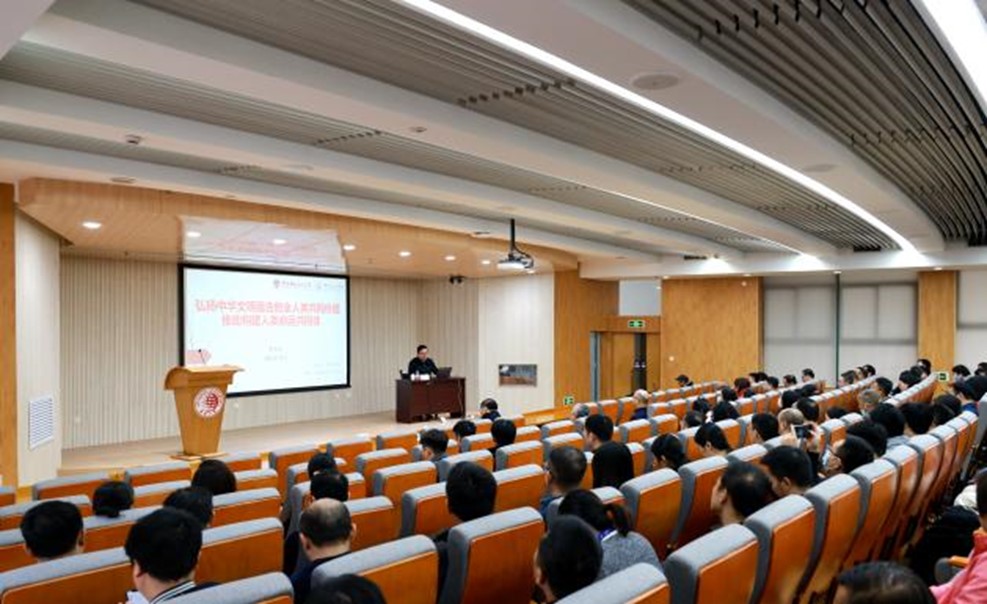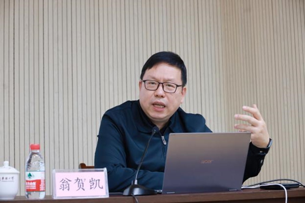 讲座中,翁贺凯梳理了人类命运共同体理念提出的脉络,阐释了全人类共同价值的内涵与意义,从理论与实践、中国与世界、现代与历史等多个维度深入解读了“弘扬中华文明蕴含的全人类共同价值 推动构建人类命运共同体”这一主题。