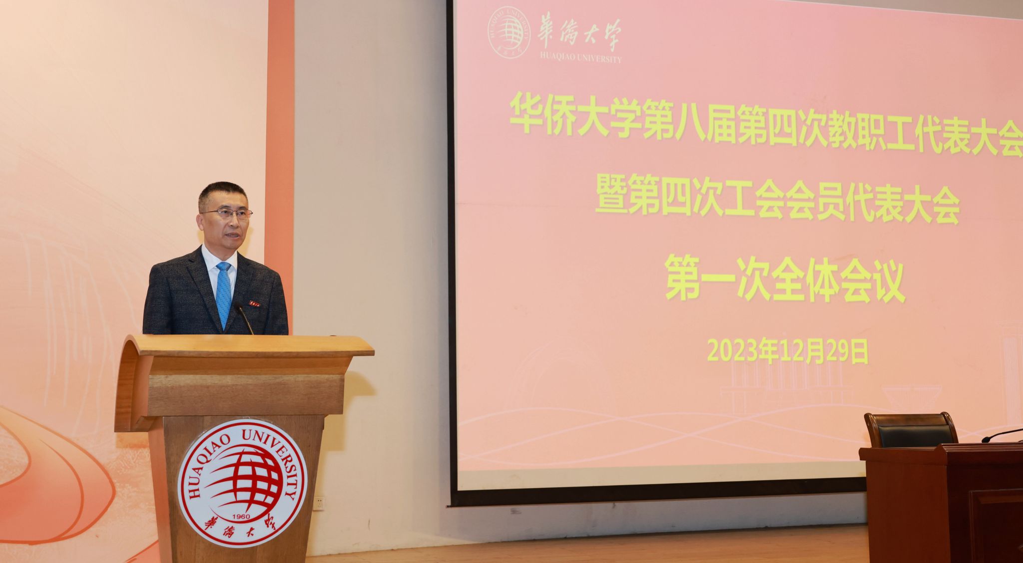 校长吴剑平以《深入贯彻习近平总书记重要指示精神 为建设教育强国贡献华大力量》为题作学校工作报告。报告从“全面落实党的领导”“全面推进高质量发展”“全面推进人才培养”“全面推进为侨服务”“全面推进开放办学”“全面推进管理服务”六个方面回顾总结了一年来学校的工作,并对2024年重点工作进行了布置。