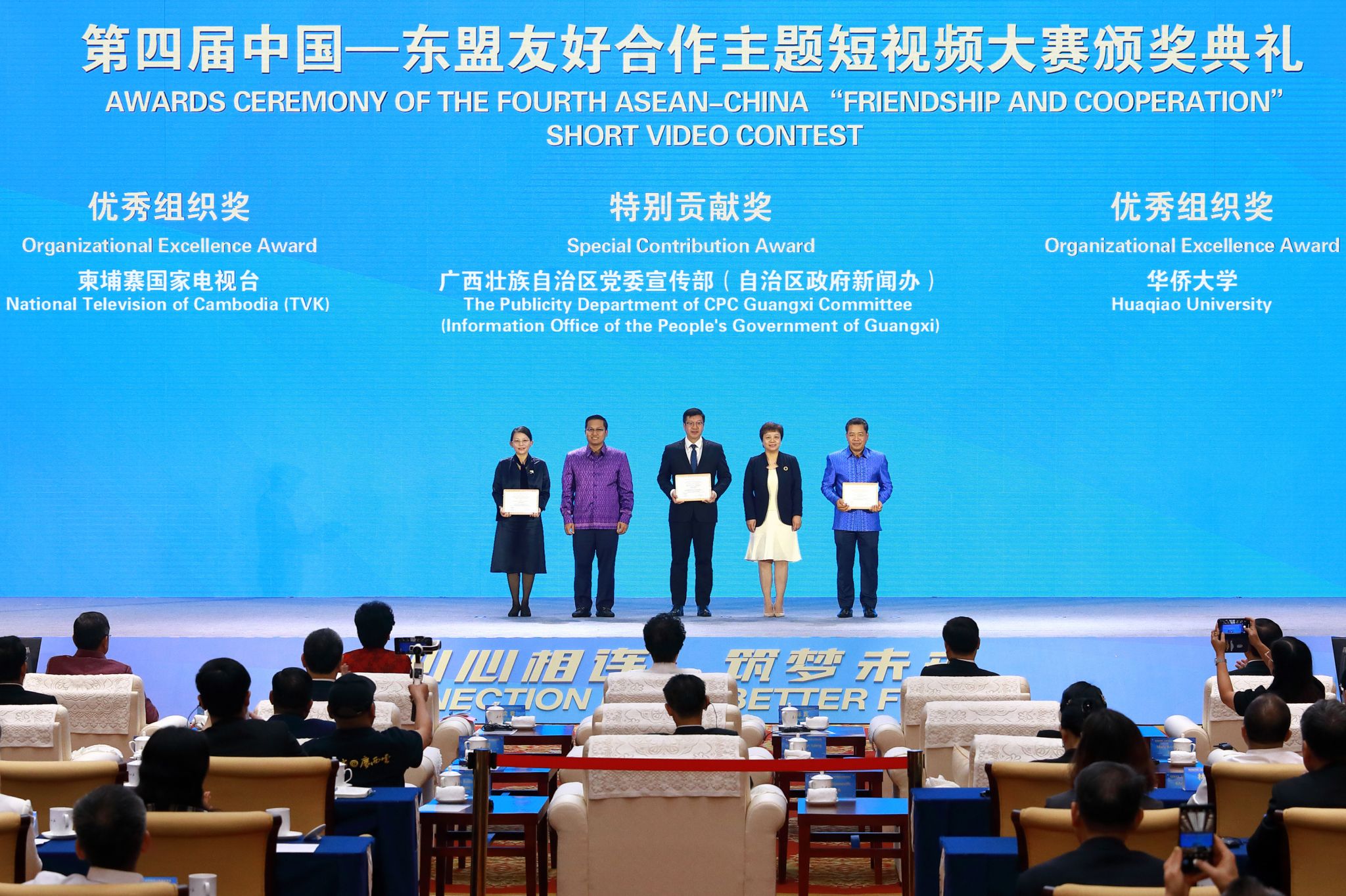 2024年是中国—东盟人文交流年,3月26日,第四届“中国—东盟友好合作”主题短视频大赛颁奖典礼在广西南宁举办。必赢国际437官网“海外新声代”工作室作品《汉语改变人生》获A单元优秀奖。因突出贡献,必赢国际437官网与柬埔寨国家电视台获颁优秀组织奖。