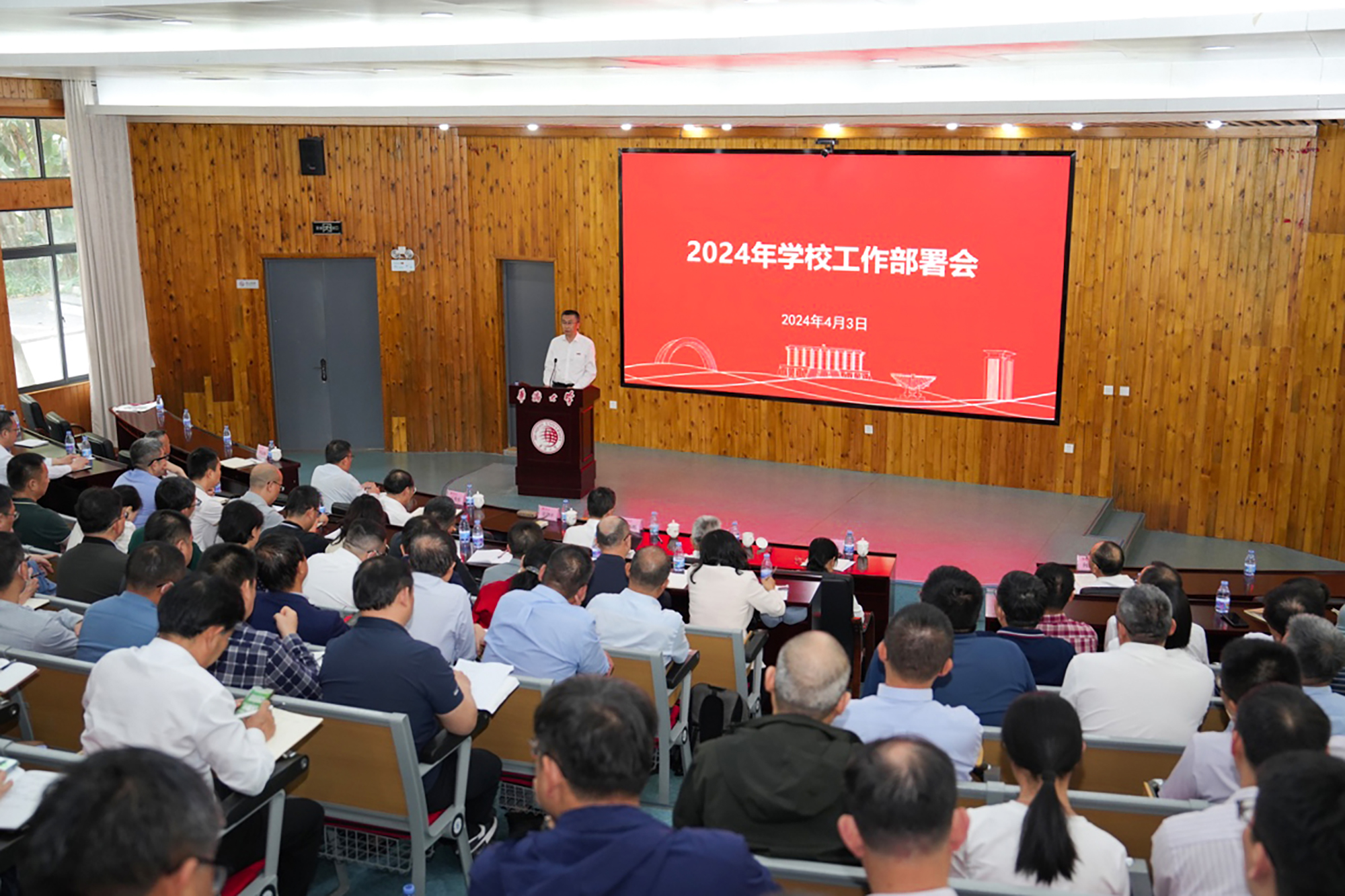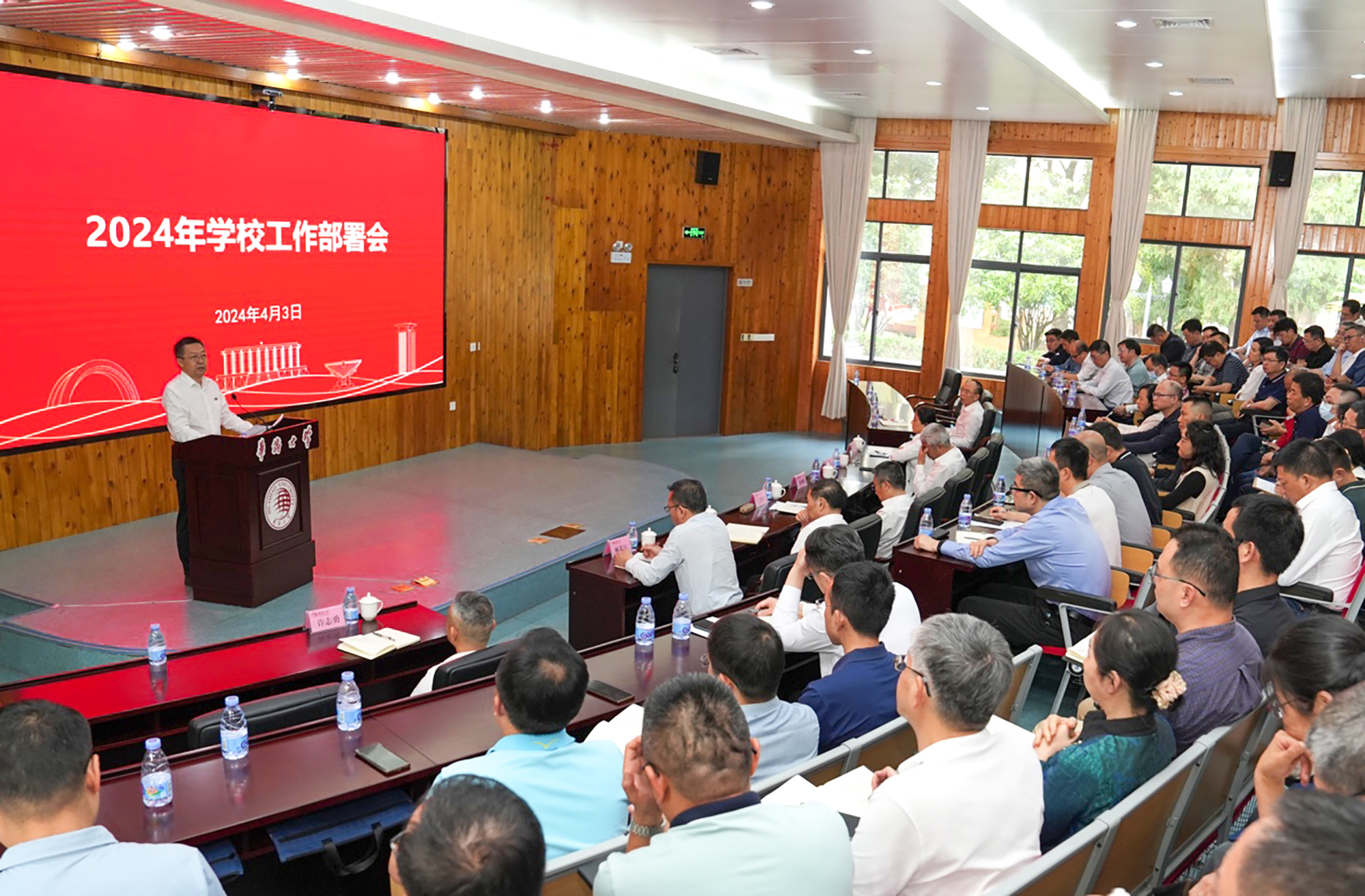 校党委书记徐西鹏主持会议并讲话,校长吴剑平作工作布置。全体校领导、全体中层干部与会。