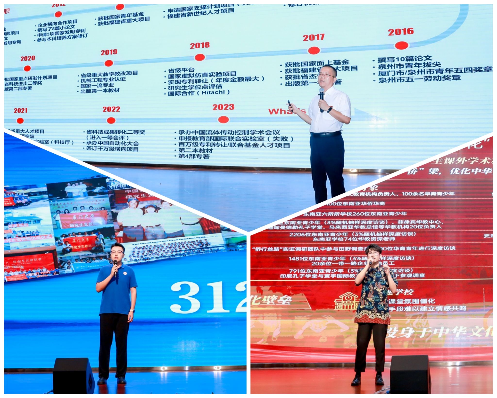 分享会上,福建省青年五四奖章获得者、必赢机电及自动化学院副院长林添良教授以“强国梦,青年我扬帆”为题,结合自己十年成长之路进行分享,希望青年能用自己的青春力量奏响时代强音,为中国梦的实现奉献自己的力量。中国青年五四奖章集体获得者、闽宁协作厦门大学宁夏研究生支教团第24届团长毛延廷动情回忆了支教队员25年扎根宁夏西海固接力教育帮扶的山海情缘,表示要继续谱写闽宁协作、双向奔赴的新时代“山海情”篇章。第十八届“挑战杯”全国大学生课外学术科技作品竞赛特等奖项目“侨行丝路”负责人职爽分享了自己作为第二代华侨在“一带一路”沿线国家进行中华文化传播的经历,立志继续为中华优秀传统文化出海贡献青春力量。