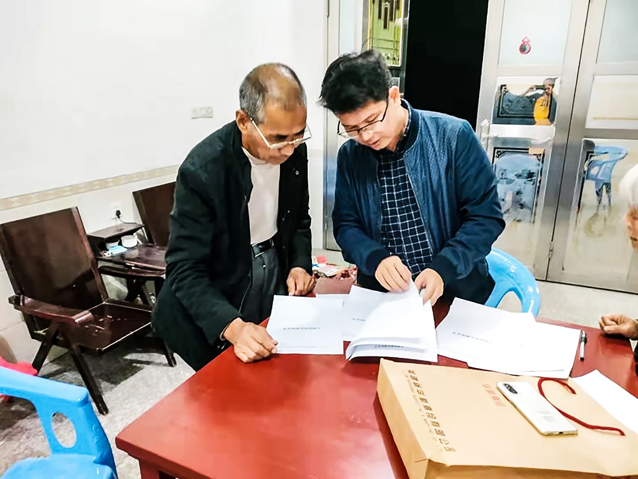 赖志彬(右)入户签订征迁协议解读补偿方案