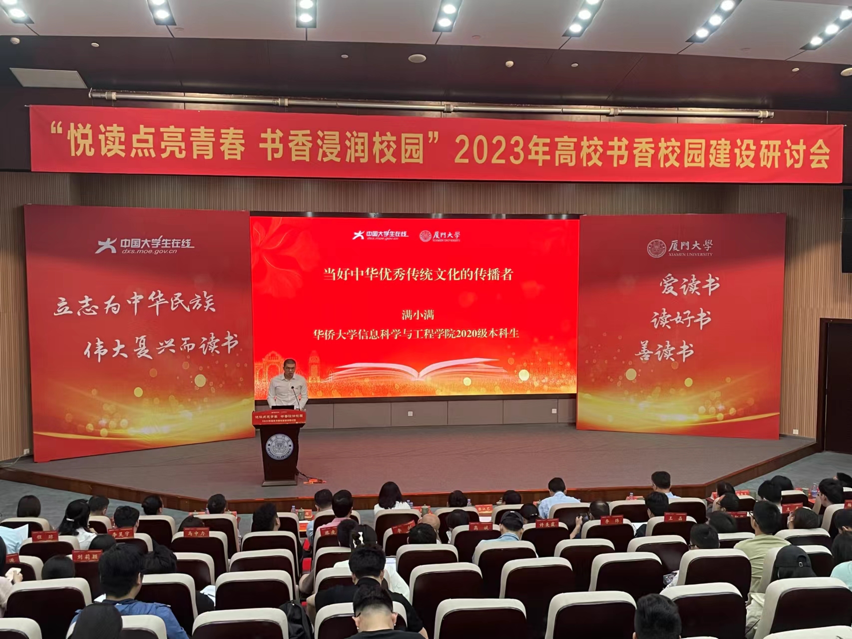 满小满曾在2023年高校书香校园建设研讨会上分享阅读心得