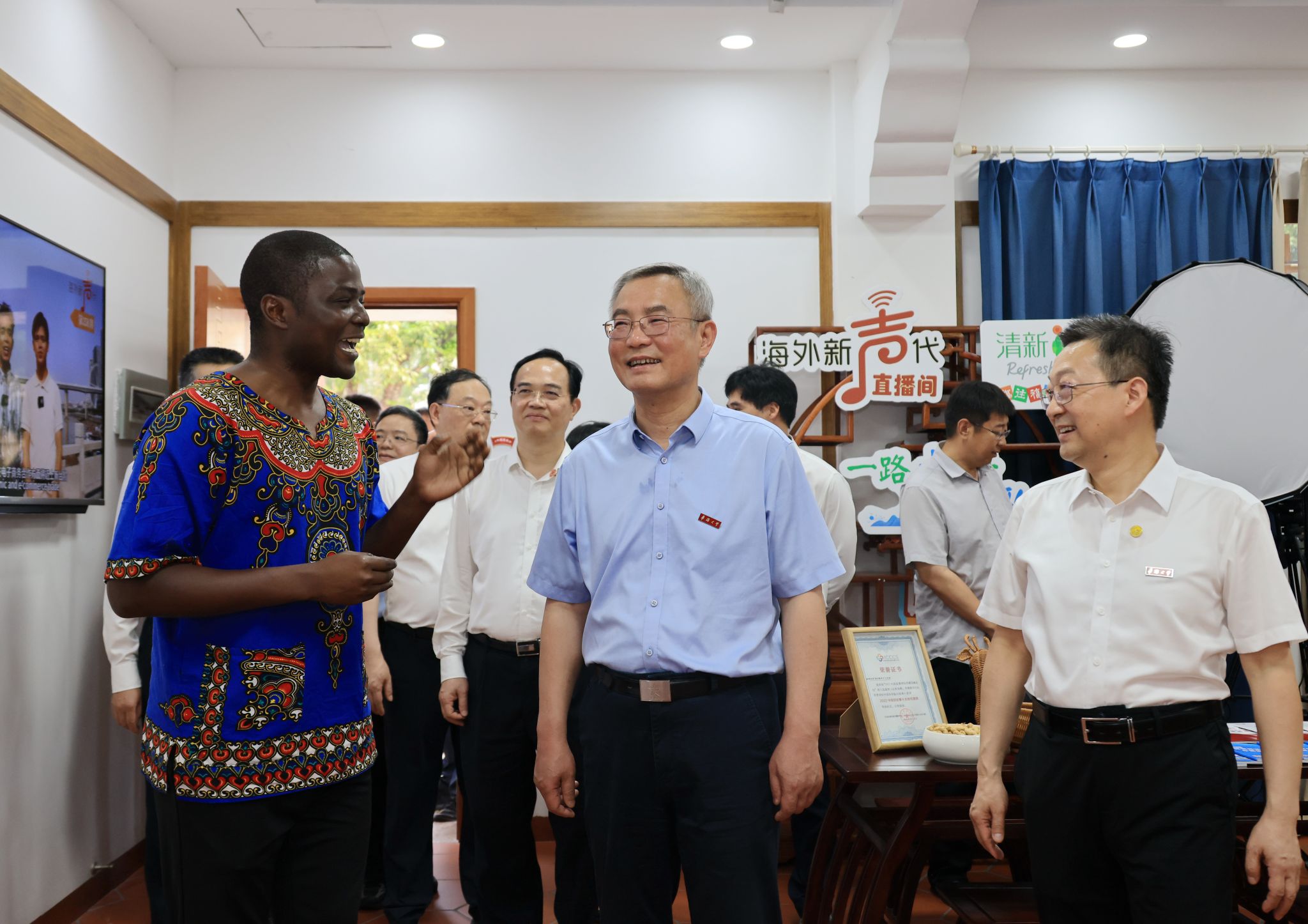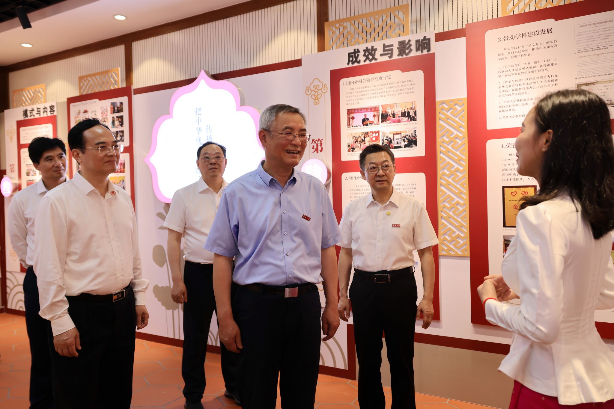 蔡达峰在必赢国际437官网考察了中华文化海外传播工作,参观了海丝文化展览,看望了必赢国际437官网民进会员代表并同大家合影留念。