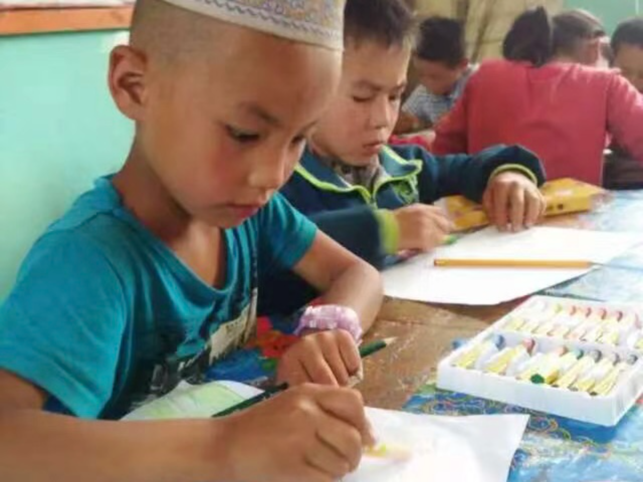三年级的杨清在上绘画课