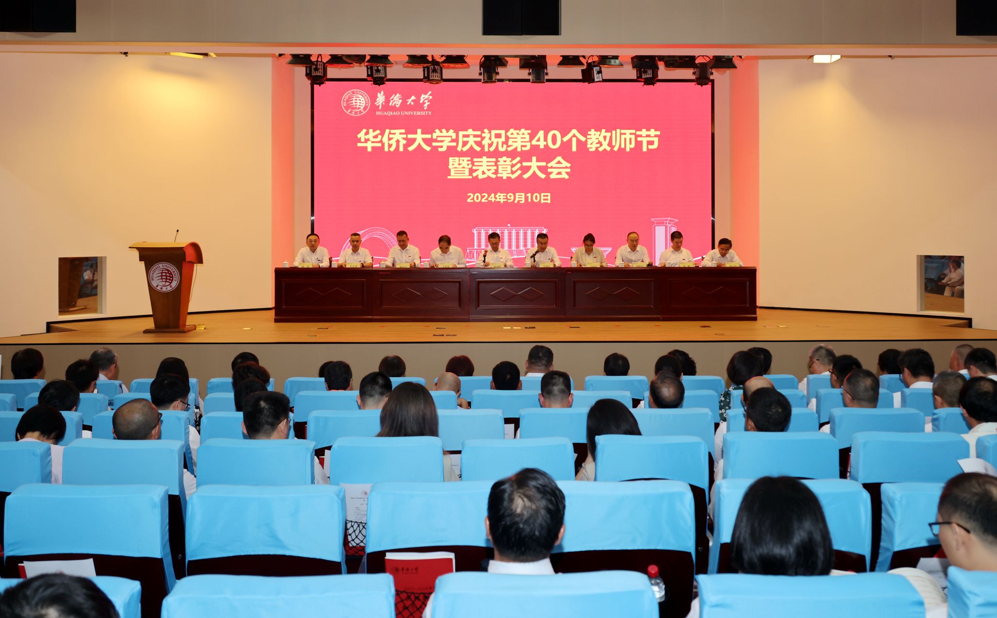 校党委书记徐西鹏出席会议并讲话,校长吴剑平主持会议。校领导班子成员,各单位主要负责人,先进集体和先进个人代表,在职教师、新聘高级职称教师、新入职教师、光荣退休教师和学生代表参加会议。