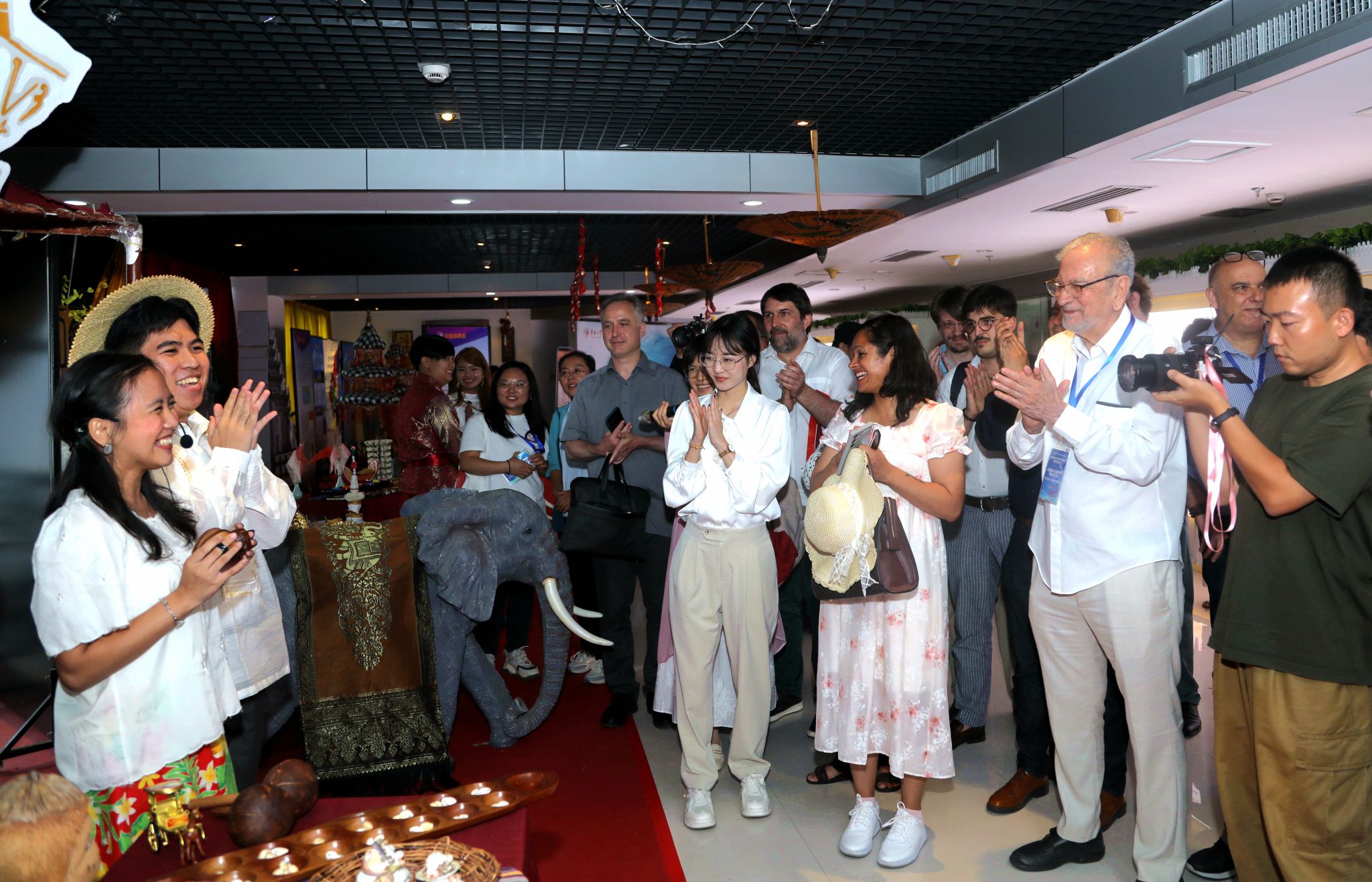 中外学者参观校史馆、海丝文化展(王欣悦 摄)