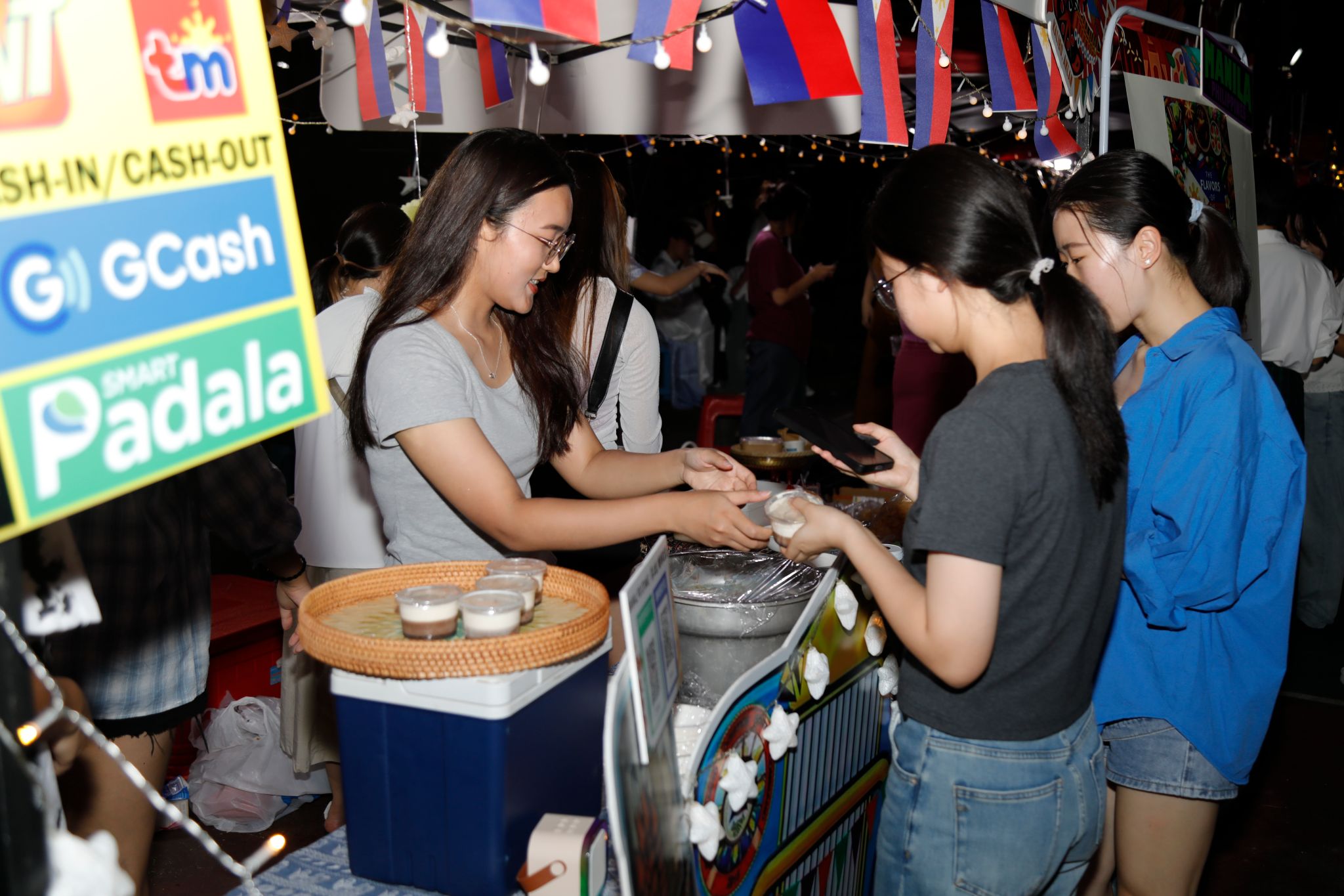 港式烧麦、台式卤肉饭、缅甸鱼汤粉、泰式奶茶……港澳台地区及东南亚国家美食摊点前,各类特色美食令人目不暇接。柬埔寨留学生孔智勇正在摊点前介绍特色甜品——糯米蛋奶和椰浆香蕉,他说,“希望通过美食这一纽带,来自不同国家和地区同学能增进了解、互相交流。”