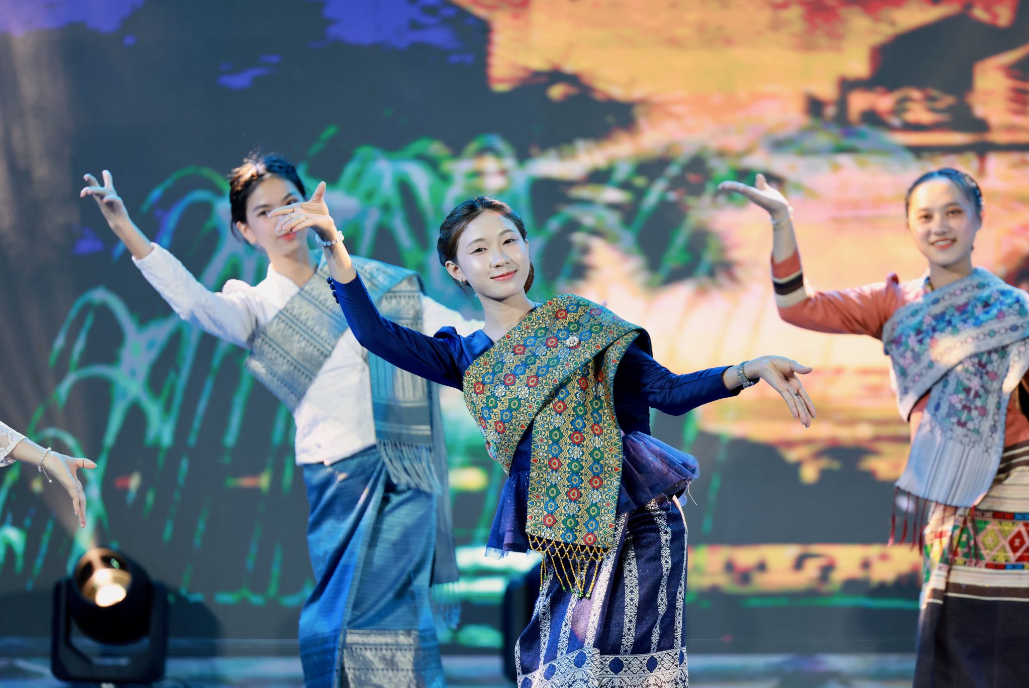 伴随着热情洋溢的掌声和欢呼声,文艺晚会的各个节目陆续上演。泉州校区的舞台上,提线木偶戏、中国传统乐器演奏和古风舞纷纷上演,展现了中华优秀传统文化的独特魅力。而在厦门校区,二十四节令鼓队整齐划一,舞蹈《万疆》灵动优雅,二胡音乐《战马》激情昂扬,现场观众纷纷鼓掌庆贺。