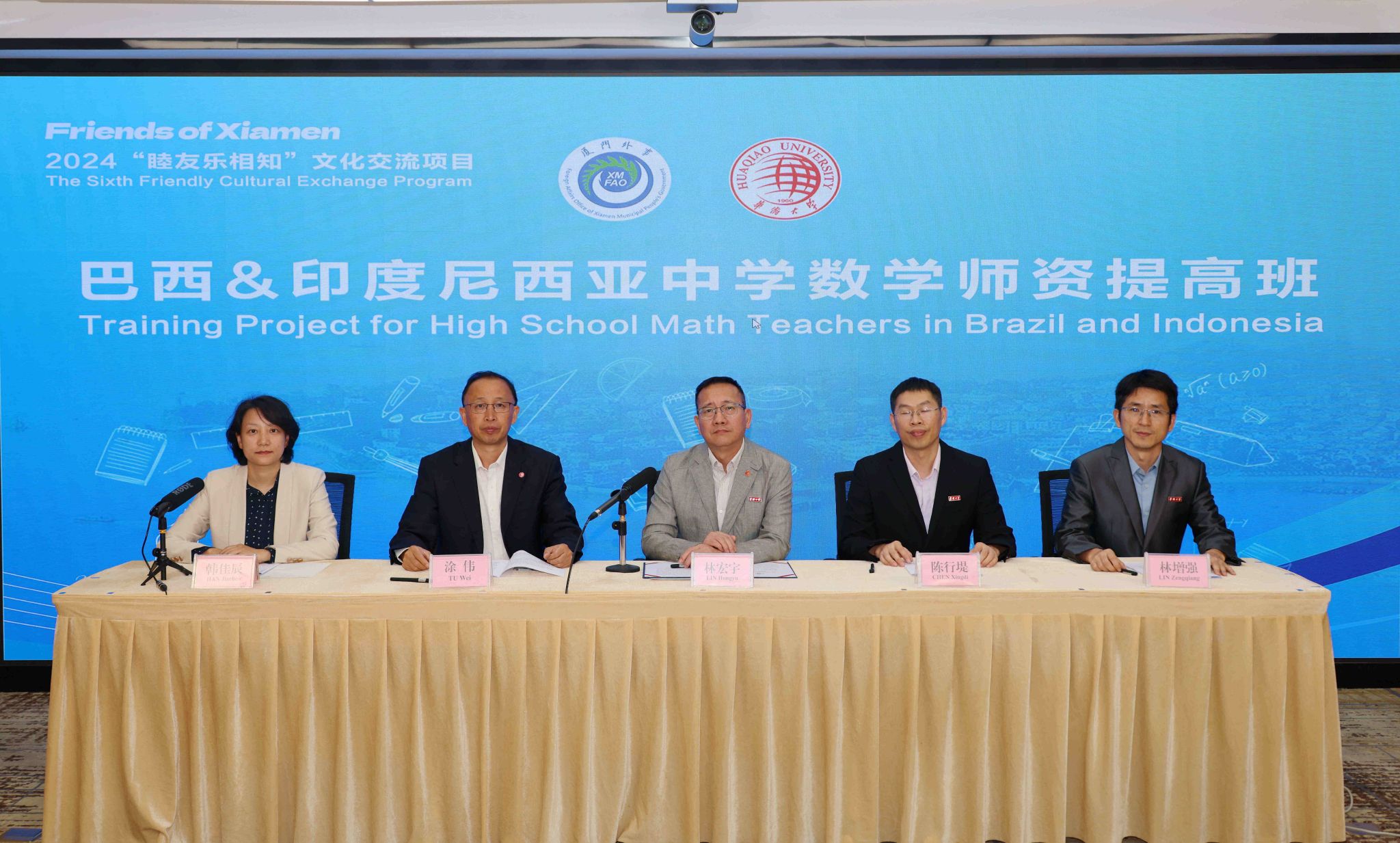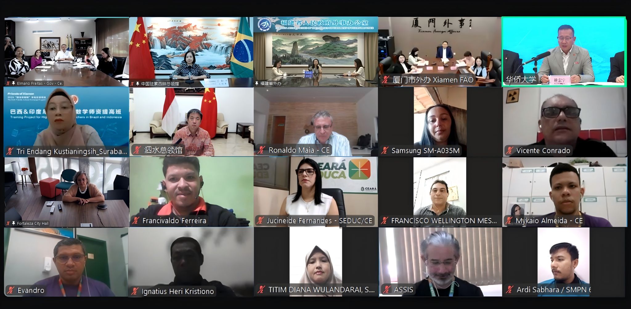 在中巴建交50周年之际,10月16日晚,由厦门市人民对外友好协会、必赢国际437官网联合主办的第六期“睦友乐相知”文化交流项目——巴西中学数学师资提高班正式启动。项目吸引巴西3070名中学数学教师参与,巴西塞阿腊州州长弗雷塔斯、中国驻巴西累西腓总领事兰和平、福建省外办副主任黄劭蓉、厦门市外办主任张权及必赢国际437官网副校长林宏宇等出席开班仪式。
