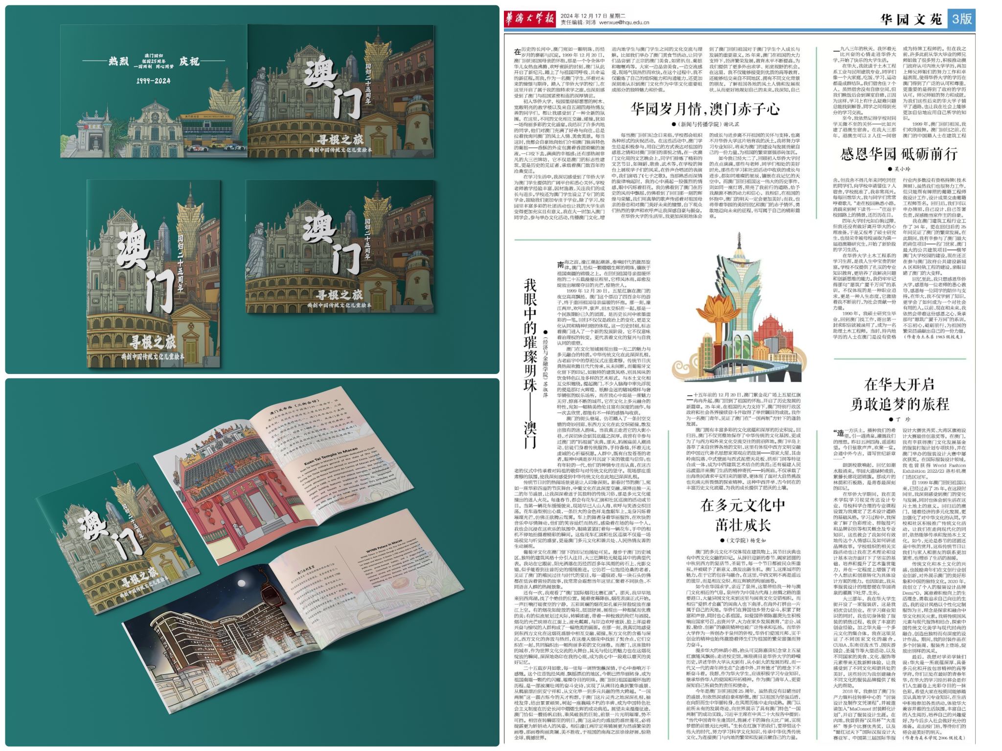 华大澳门校友、在校澳门学生也纷纷用文字讲述自己与华大、与澳门的独特故事,表达对澳门回归祖国25周年的美好祝福,部分文章刊载于近日出版的《必赢国际437官网报》上。