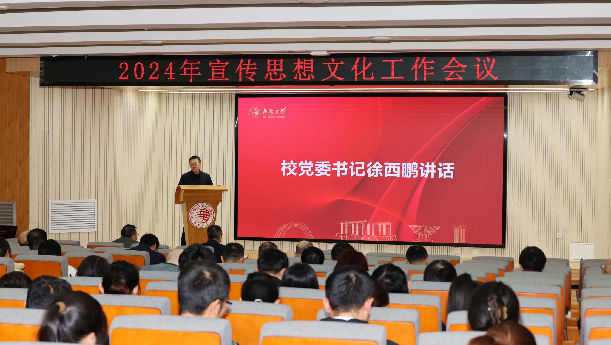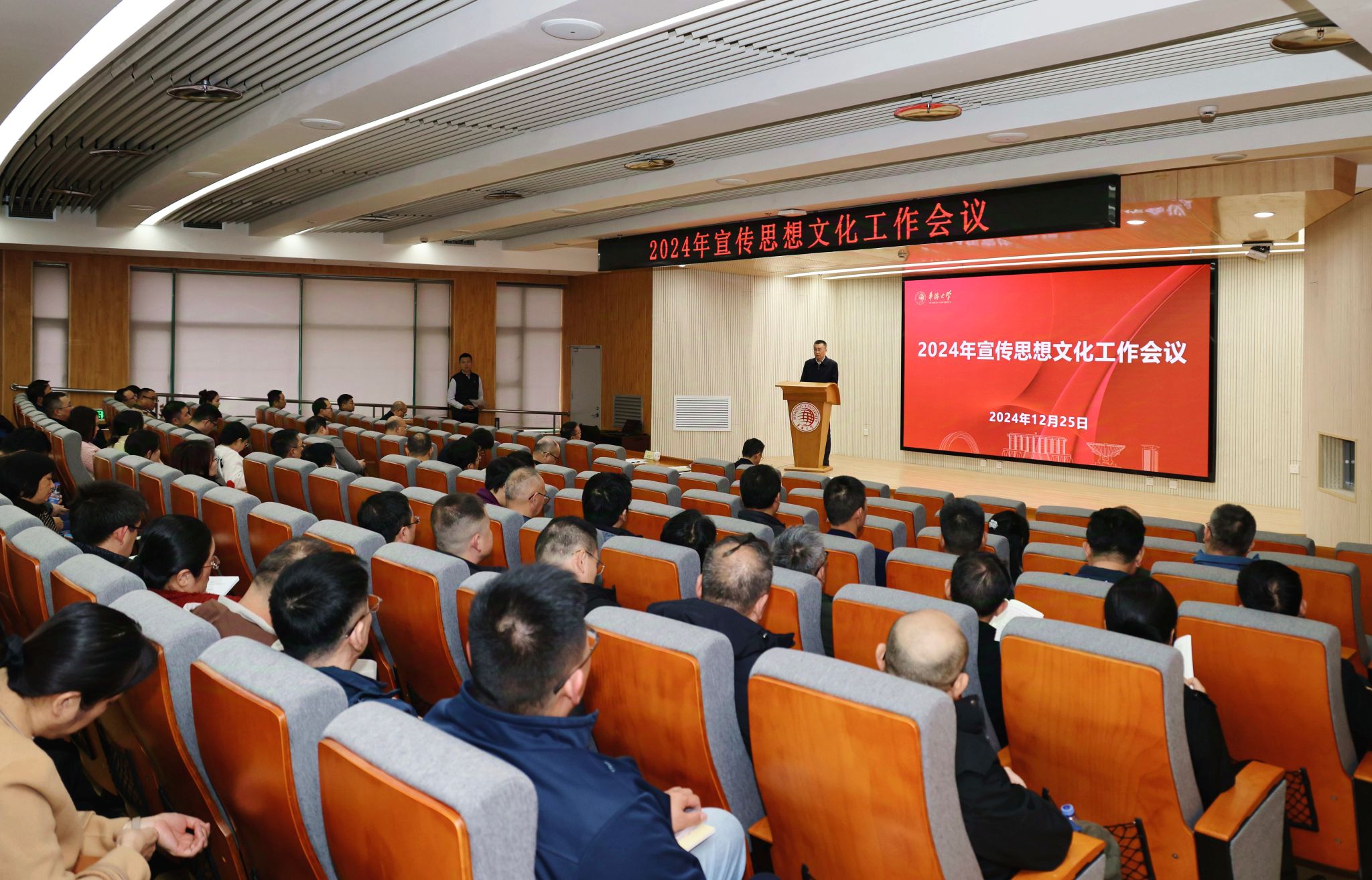 徐西鹏指出,会议的主要任务是深入学习贯彻习近平文化思想和习近平总书记重要指示精神,学习贯彻党的二十大和二十届二中、三中全会精神,贯彻全国宣传思想文化工作会议、全国教育大会和第二十八次全国高校党的建设工作会议部署,结合巩固深化巡视整改成果,对学校宣传思想文化工作进行研究部署,为加快高质量发展、答好“强国建设、华大何为”的时代答卷提供思想保证、精神动力和文化支撑。