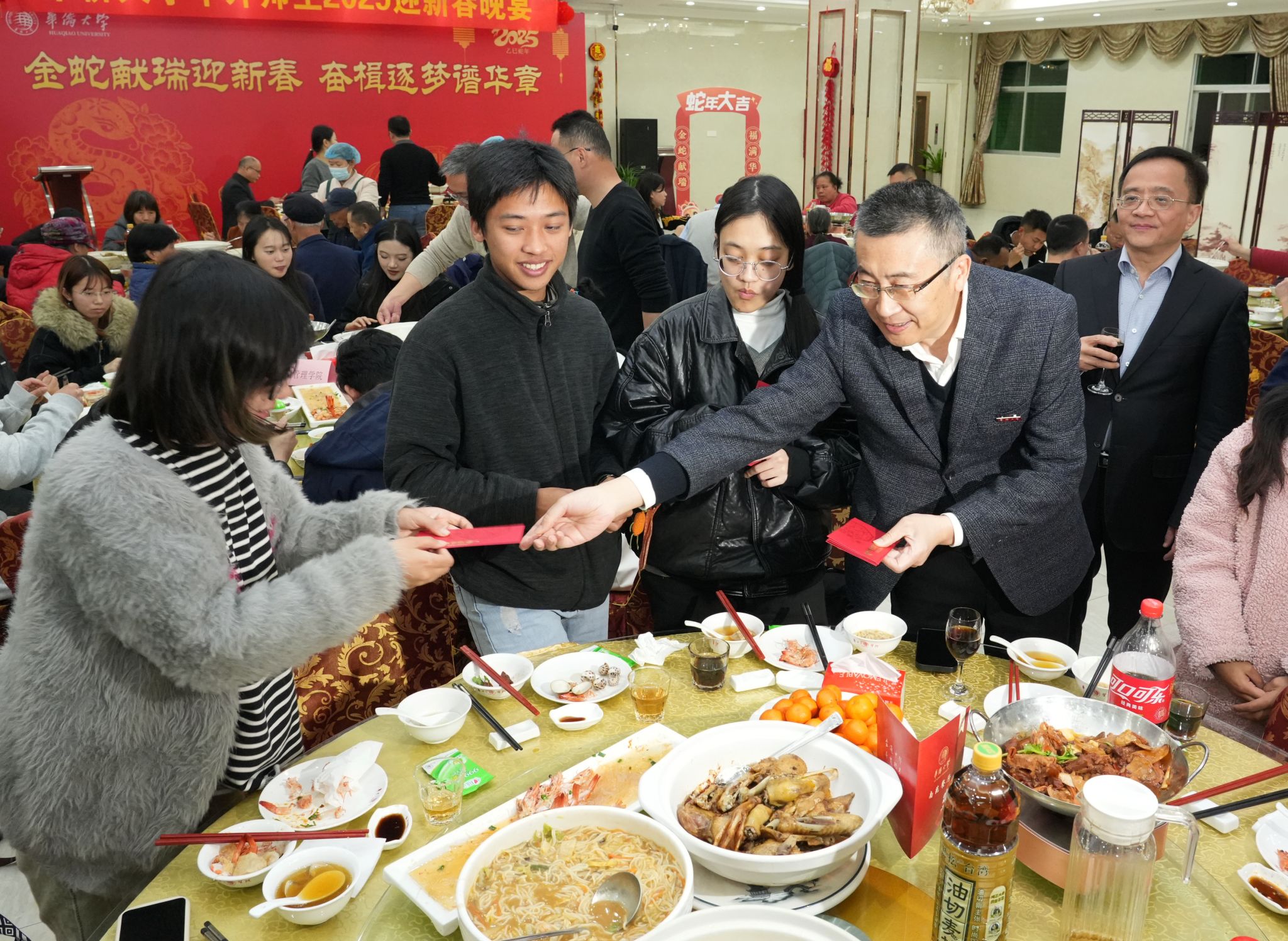 除了准备丰盛的菜肴,必赢国际437官网党委书记徐西鹏、校长吴剑平,副校长王秀勇、黄辉等校领导还现场向学生们派发了压岁钱。接过象征红红火火的红包,学生们纷纷拍照,与家人朋友分享节日的喜悦。