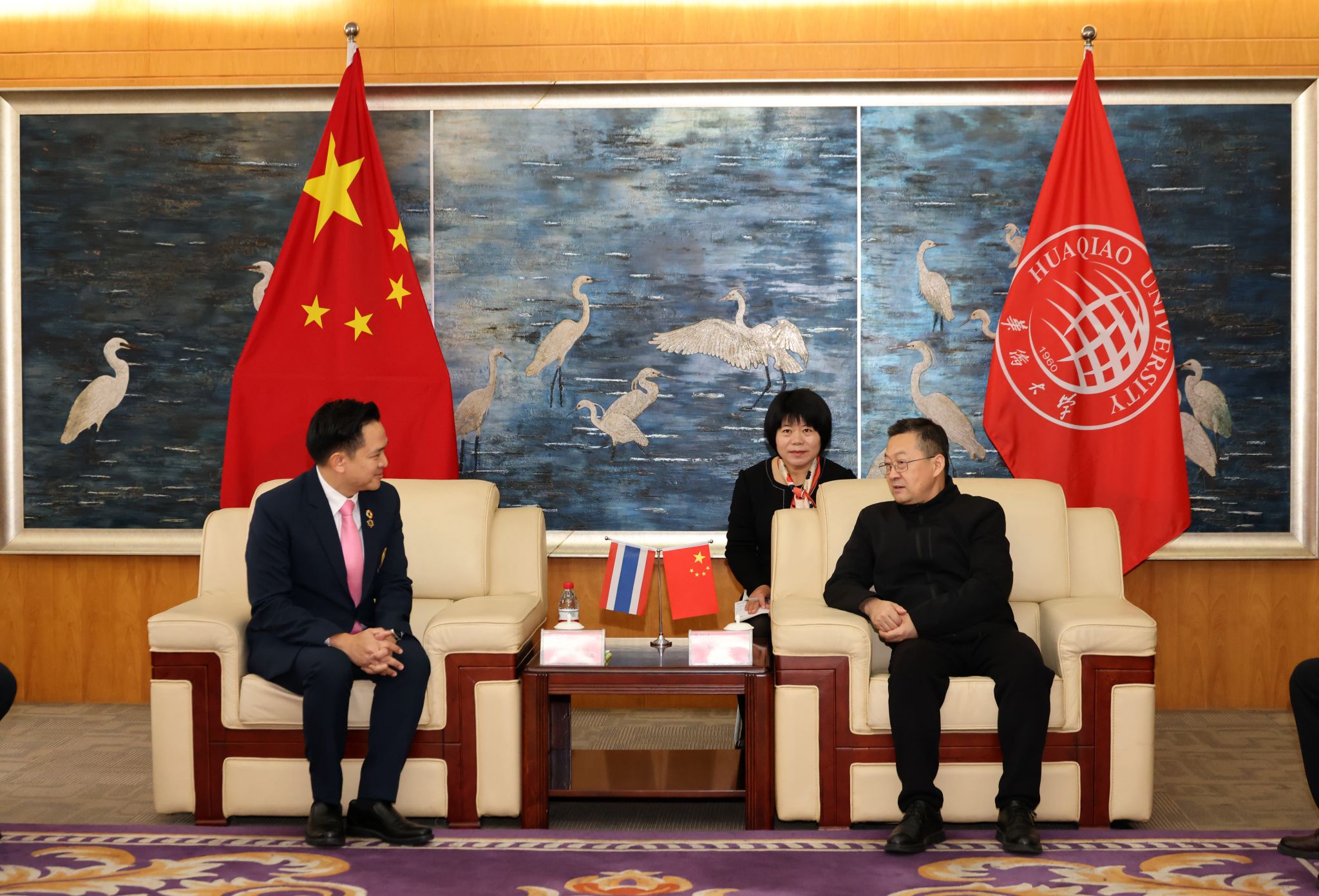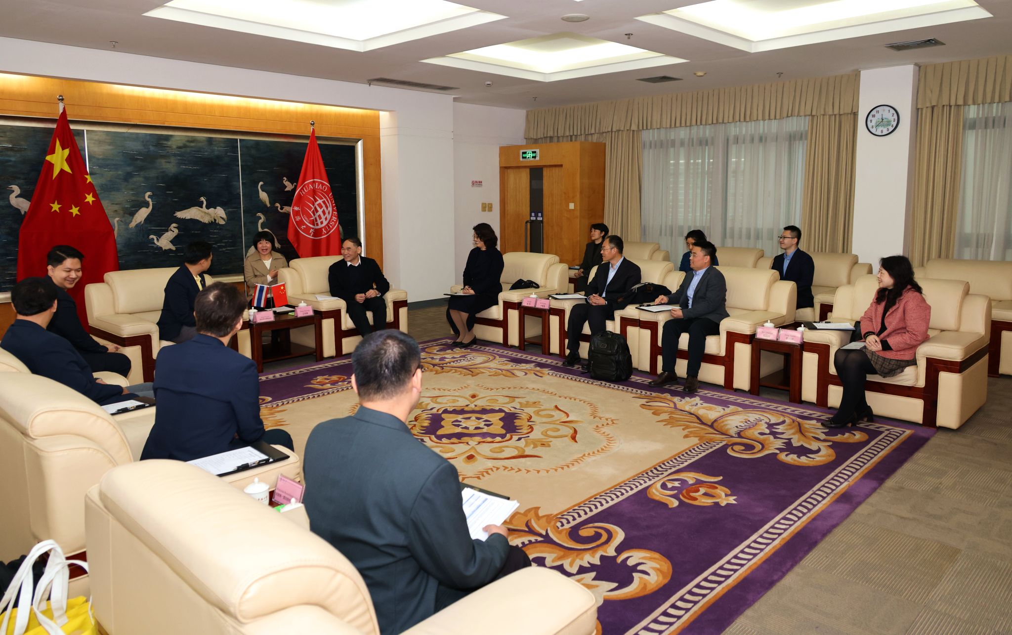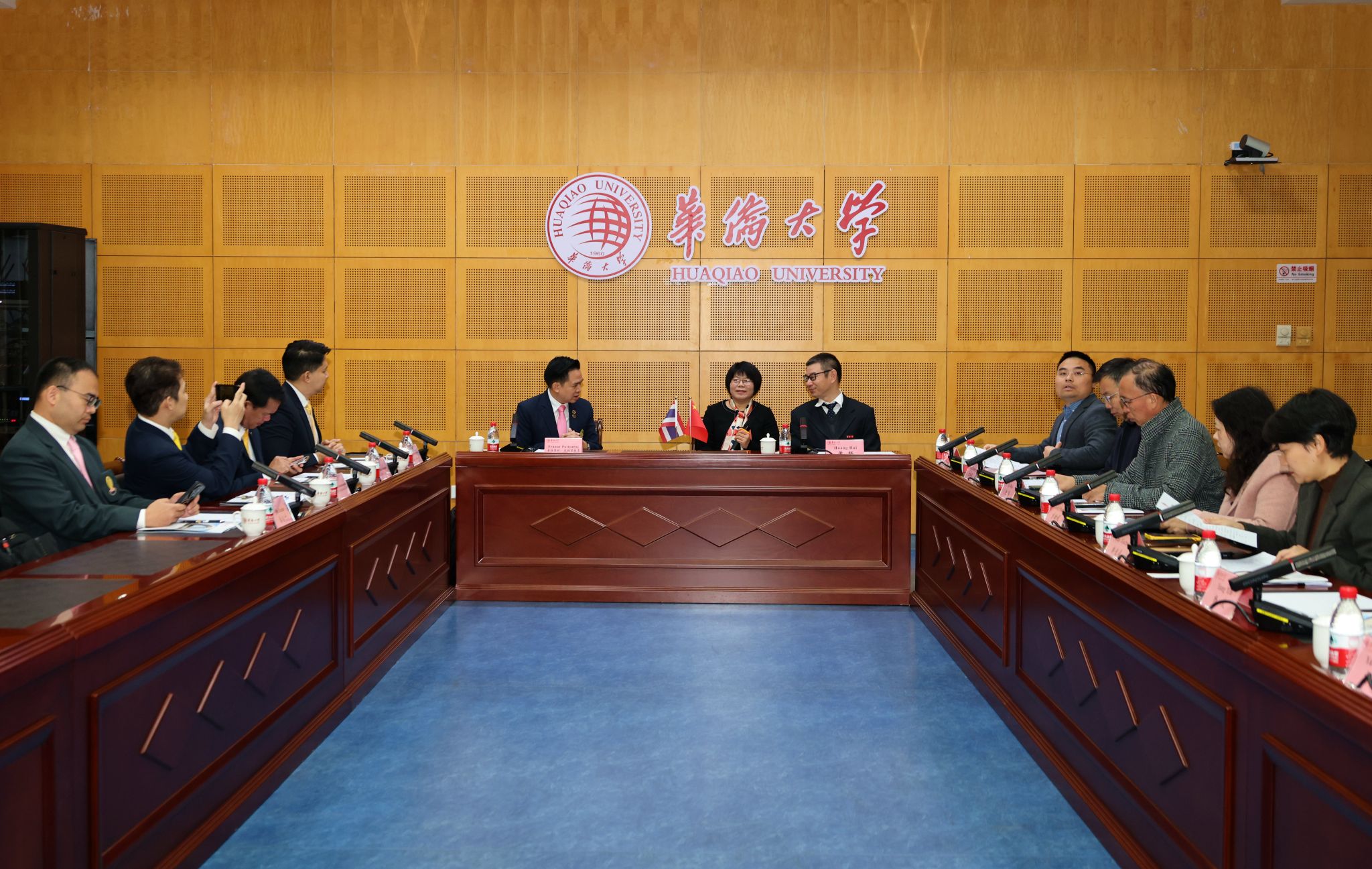 必赢国际交流合作处、华文教育处、科研院、华文学院、材料科学与工程学院、发光材料与信息显示研究院等相关单位负责人参与会见及座谈。朱拉隆功大学代表团此行还参观了必赢厦门校区及华文学院,并与外国政府官员中文学习班泰国学员展开深入交流。