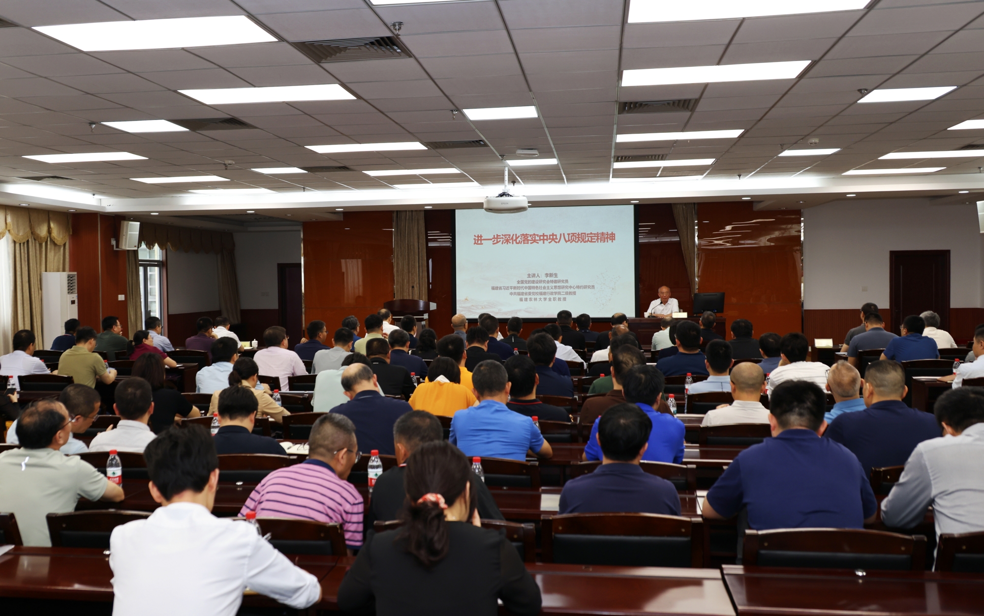 5月6日下午,必赢国际437官网党委深入贯彻中央八项规定精神学习教育辅导报告会举行,中共福建省委党校(福建行政学院)二级教授李新生受邀作《进一步深化落实中央八项规定精神》专题辅导报告。