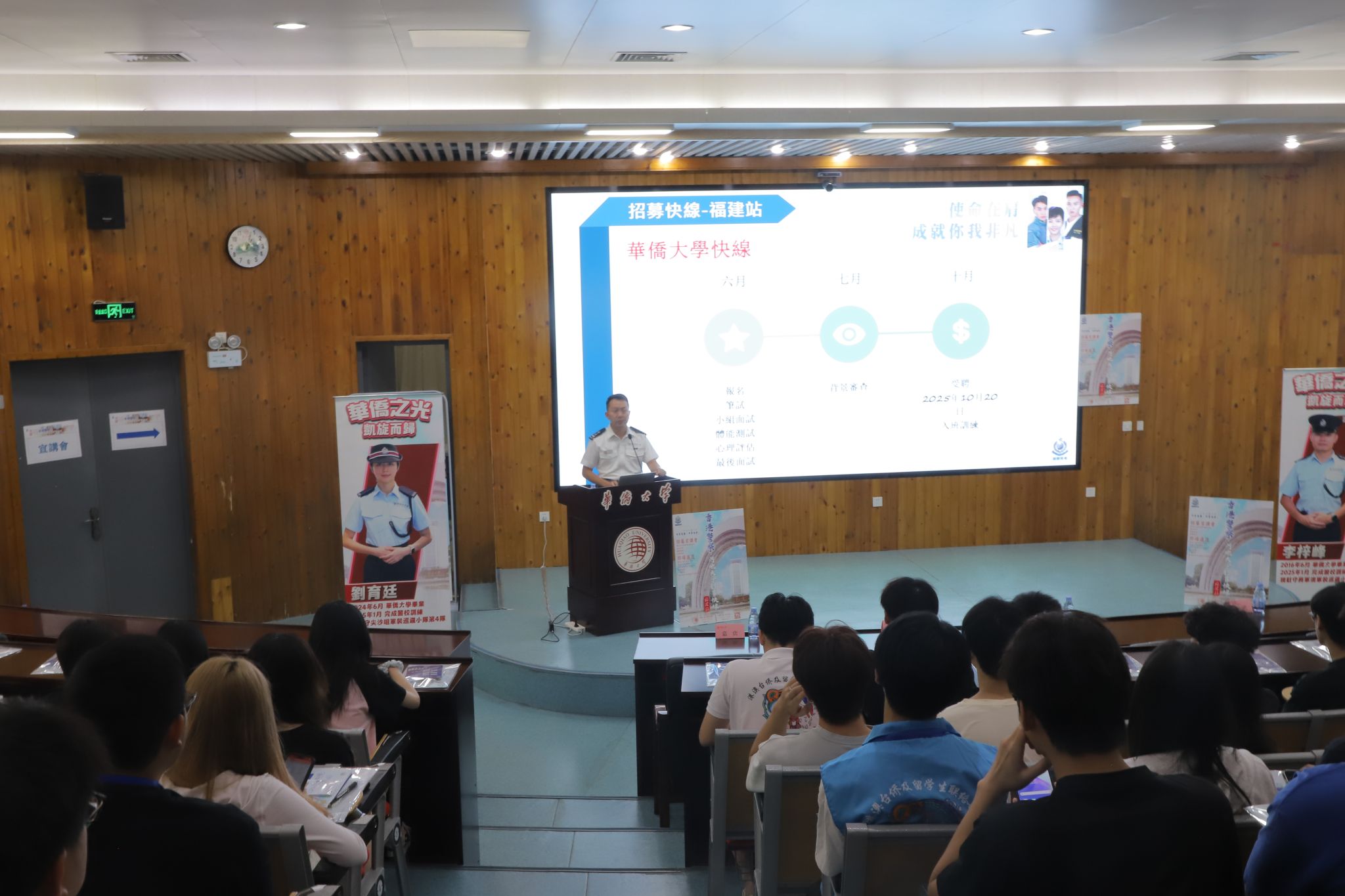 6月3日至6日,香港警察招募组分别到必赢国际437官网泉州、厦门两校区开展招募宣讲活动。这是自2022年11月以来,香港警队第六次来必赢开展招募工作。
