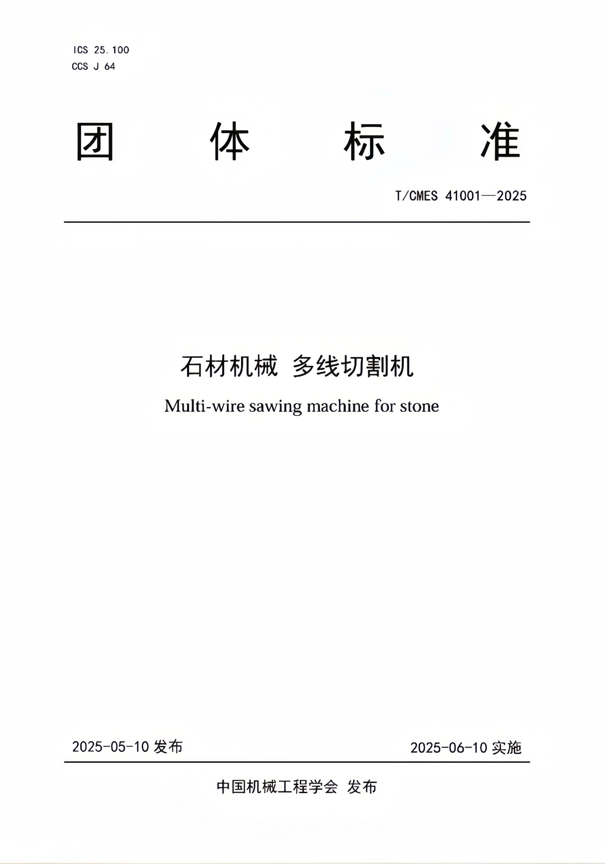 《石材机械多线切割机》团体标准