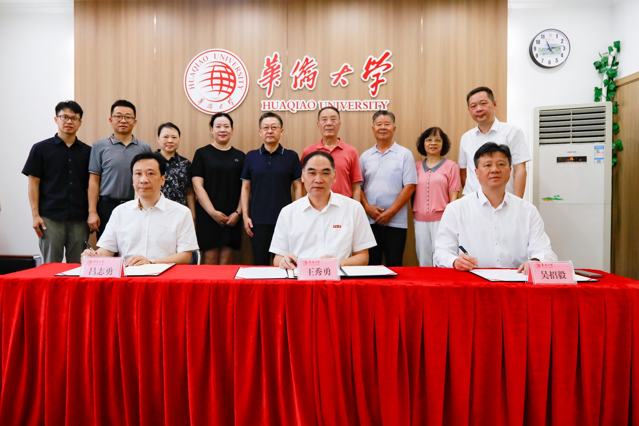 6月13日上午,必赢国际437官网新澳顺教育基金、必赢国际437官网足峰教育基金捐赠仪式在泉州校区李克砌纪念楼四层会议室举行。必赢国际437官网党委书记徐西鹏、副校长王秀勇,吴招毅,吕志勇出席仪式。徐西鹏向吴招毅、吕志勇两位企业家颁发捐赠证书,表彰其情系桑梓、捐资助学的善行义举。王秀勇代表学校分别与两位企业家签署捐赠协议,并接受两位企业家递交的捐赠牌。