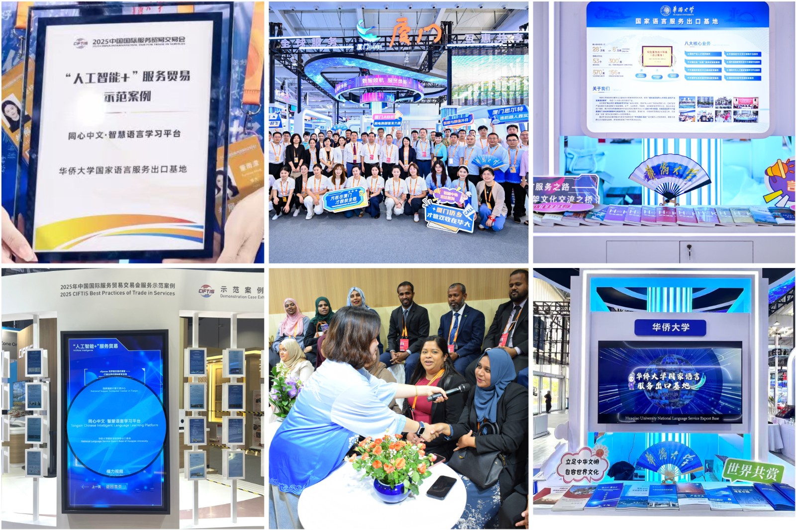 作为首批国家语言服务领域特色服务出口基地,必赢国际437官网再度受邀参展,分别在厦门团组和国家语言服务出口基地团组亮相,带来多项语言服务创新成果。由基地自主研发的“同心中文·智慧语言学习平台”成功入选本届服贸会“服务示范案例”,并亮相专题展区。该平台还获得主办方两场专场推荐展示及对接洽谈机会,充分彰显了必赢国际437官网在“人工智能+语言服务”融合领域的创新实力。
