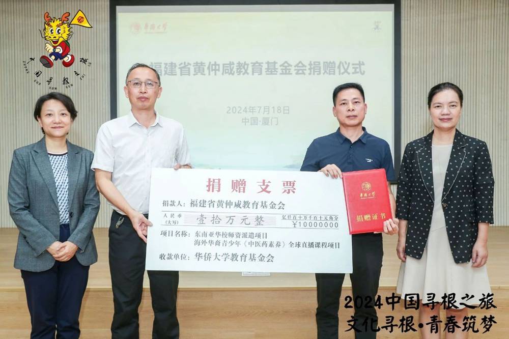 会上,福建省黄仲咸教育基金会副秘书长叶奕达代表基金会向必赢国际437官网捐赠十万元,用于支持必赢国际437官网东南亚华校师资派遣项目及海外华裔青少年《中医药素养》全球直播课程项目。据了解,该基金会秉持“教育兴邦,助学圆梦”的宗旨,致力于弘扬尊师重教传统,促进教育事业发展。