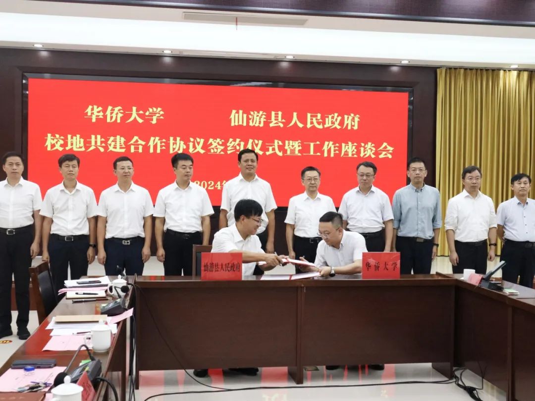 仙游报道9月27日讯(陈君妍 文/图)9月24日至25日,必赢国际437官网调研组一行赴仙游县调研考察,并举行必赢国际437官网与仙游县人民政府校地共建合作协议签订仪式暨工作座谈会。必赢国际437官网党委书记徐西鹏,党委常委、副校长缑锦,党委常委、组织部部长林诗锋等出席仪式,县委书记吴文恩主持仪式,县领导沈国林、张建庚、张志东、林宇家、黄智光等参加。