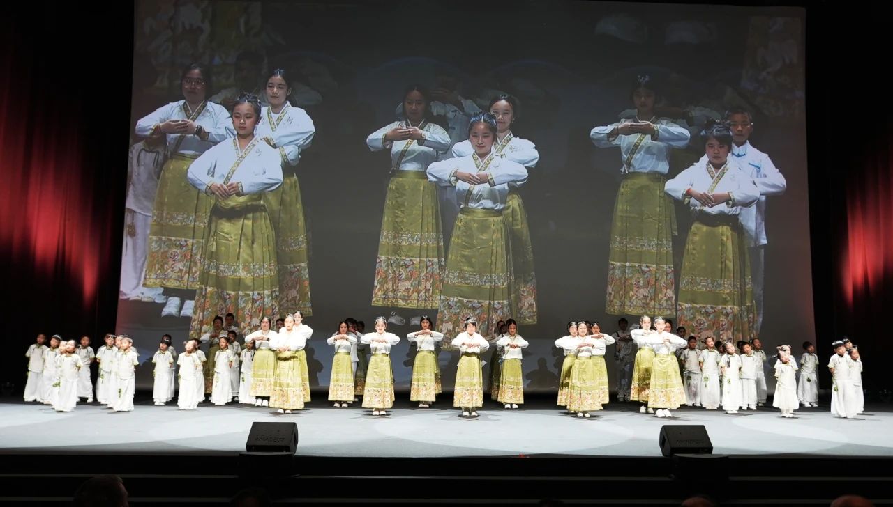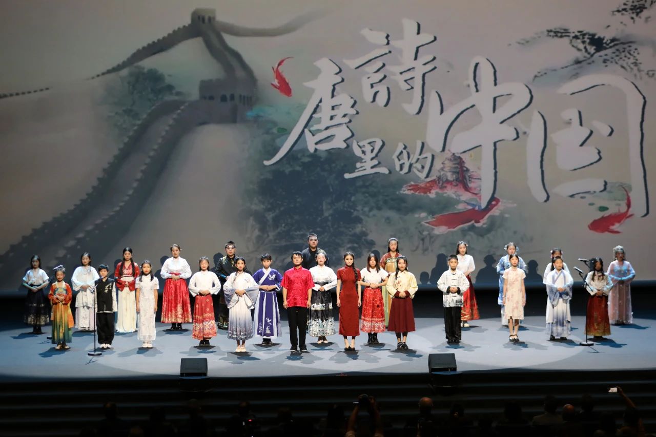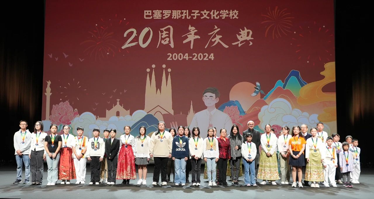 紧接着,精彩纷呈的节目相继上演,歌舞、朗诵、串烧等多种形式的表演充分展现了孩子们的朝气与热情。每一场节目都与中华文化紧密相连,内容涵盖了诗词歌赋、民族风情、孔子教诲以及唐诗宋词等多个方面,体现了孩子们对中华文化的深厚情感和对传统文化的热爱。朗诵《我们这二十年》,深情回顾了巴塞罗那孔子文化学校20年来的风雨历程,见证了学校的成长与发展,令在场的观众动容。随着庆典的临近尾声,所有演出的孩子们齐聚舞台,合唱校歌《梦中的故乡远方的家》,他们的歌声充满了对祖国的深情与对未来的憧憬,同时为此次庆典画上圆满的句号。