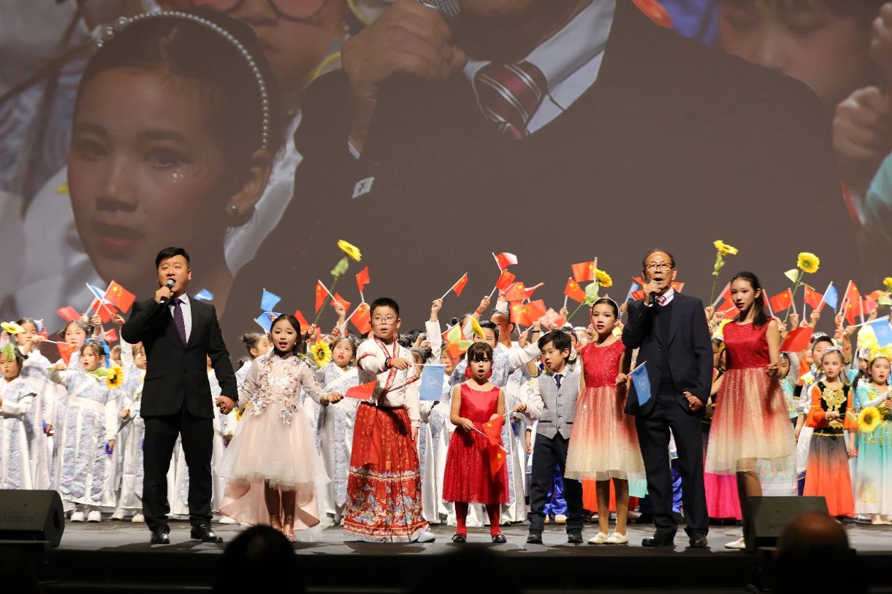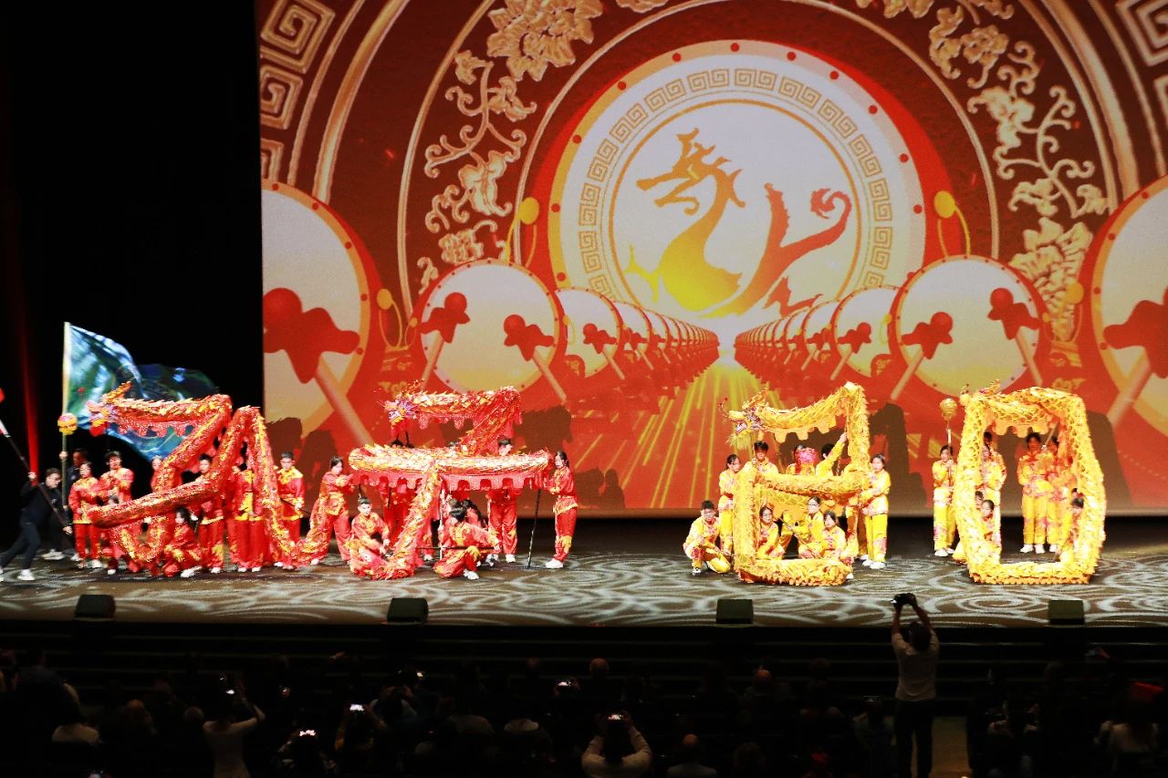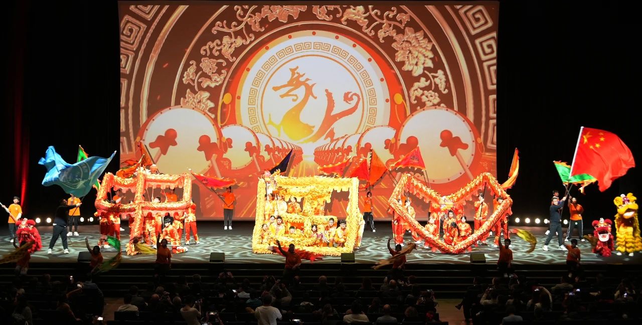 庆典伊始,充满中国传统文化气息的舞龙打鼓表演点燃了现场气氛。孩子们身着传统服饰,激情四溢地挥舞着鼓棒,龙舞腾飞,鼓声震天,整个会场弥漫着浓厚的中国文化氛围。精彩的舞龙表演更是组成了“孔子20”和“中国心”字样,令人惊叹不已,现场掌声雷动,气氛热烈非凡。紧接着,由崔康安老师、刘旭老师、朱美莹老师,以及学生王安然、黄子鸣、潘雨菲、陈家瑞组成的7位主持团队登上舞台,为庆典拉开了序幕。
