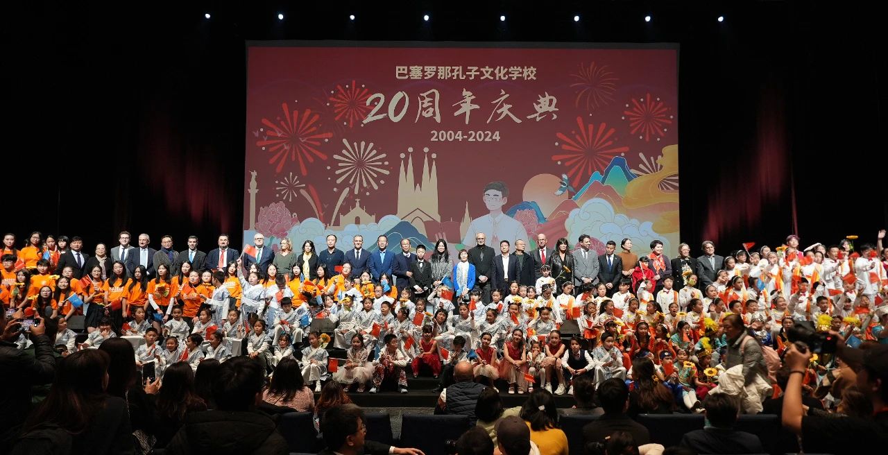 中国驻巴塞罗那总领事孟宇宏高度评价了巴塞罗那孔子文化学校在传承中华文化和促进多元文化融合方面的努力,向全体教职员工、学生及所有支持学校发展的社会各界表示崇高敬意和衷心感谢,并表示驻巴塞罗那总领馆将继续支持华文教育发展,共同提升中文教育的吸引力与影响力,推动中华文化在海外的传播。值此庆典之际,孟宇宏对学校成立20周年表示热烈祝贺,期望学校在未来以更加蓬勃的姿态迎接新的发展,为中西文化交流、人民友谊以及双边关系的持续深化作出更大贡献。