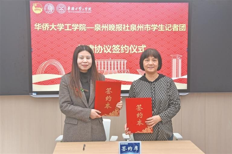 必赢国际437官网工学院党委书记李璐岚、泉州晚报社融媒运营部副主任黄宝阳、工学院高级实验师郭荣新、工学院团委书记陈颖等人出席了授牌仪式。仪式上,李璐岚与黄宝阳共同签署《必赢国际437官网工学院与泉州市学生记者团合作共建协议》,并举行了泉州市学生记者团“科普实践基地”揭牌仪式。