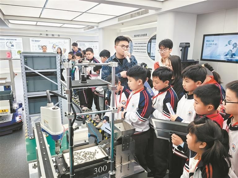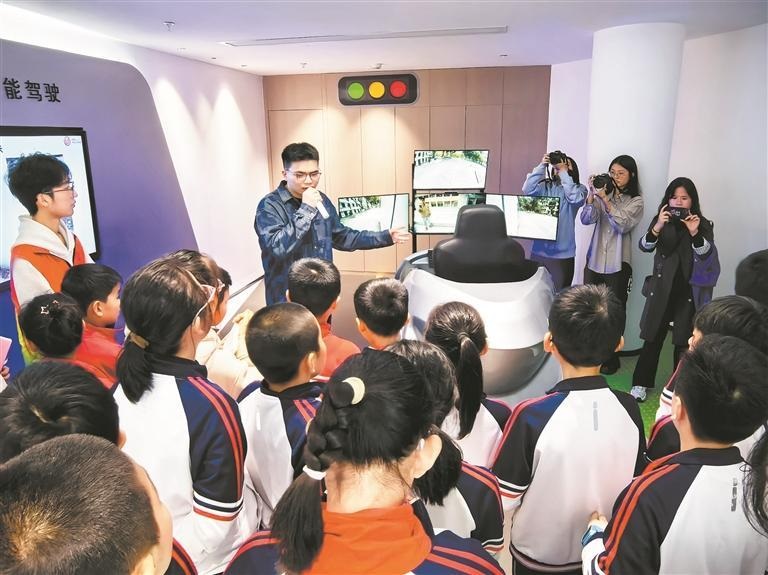 揭牌仪式结束后,在曾泽林老师的带领下,小记者们前往工学院科技创新中心、泉州数字研究院,沉浸式地参观了通信大数据可视化平台、数字孪生技术、元宇宙技术、智能驾驶、5G直播、拉链组装分拣等科技成果,了解了科技在生活和地方经济建设中的重要作用。
