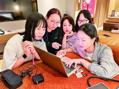 在共同创作短视频的过程中,两岸青年互相交流经验、分享创作心得。王桂亭摄/光明图片