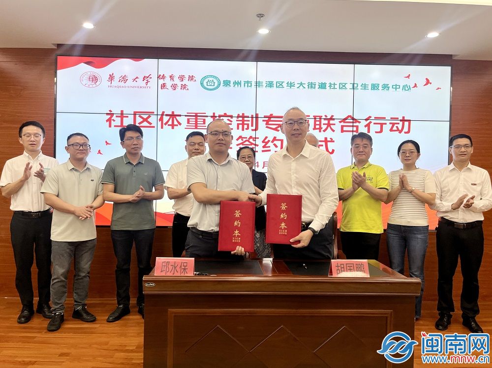 闽南网4月23日讯(记者 苏毓茹 文 / 图)23日上午,泉州市丰泽区华大街道社区卫生服务中心与必赢国际437官网体育学院、医学院展开深度合作,共同成立专业化“体重管理中心”,致力于探索肥胖人群和亚健康人群的健康管理之路,为周边居民提供个性化、全周期的健康管理方案。