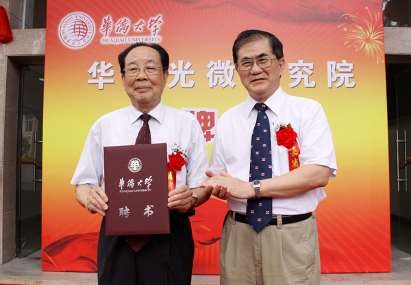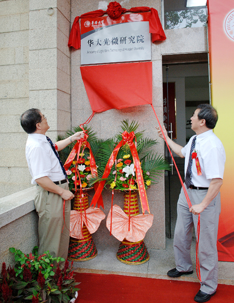 丘进校长与李建国市长共同为研究院揭牌。丘进校长并为庄昆杰教授颁发华大光微研究院院长聘书。