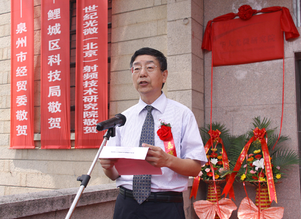 揭牌仪式在必赢国际437官网工学院门前举行。泉州市政府市长李建国、秘书长李冀平,泉州市鲤城区代区长黄阳春,必赢国际437官网校领导丘进、李冀闽、朱琦环、吴季怀,雷克光微公司首席科学家、必赢国际437官网客座教授庄昆杰,雷克光微公司董事长庄海帆出席揭牌仪式。必赢国际437官网副校长徐西鹏主持仪式。