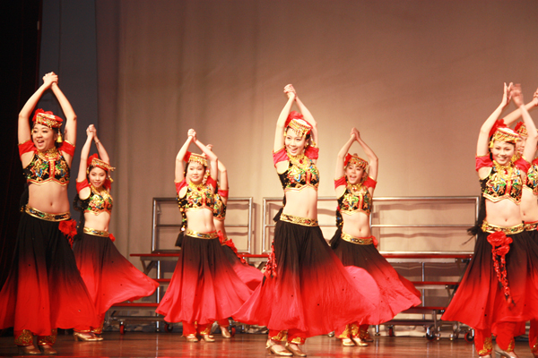实习生们发挥各自的专业特长,表演了扬琴独奏《打虎上山》、双人舞《竹光月下》、古筝独奏《彝族舞曲》、钢琴独奏《阿拉伯风》,以及《舞蹈技巧组合》等。为表达对华大实习老师的感谢,濠江中学学生也登台献艺,表演了实习生参与指导的合唱《祝福》、《对花》,维族女子群舞《花儿》等。精彩的演出博得现场阵阵掌声。