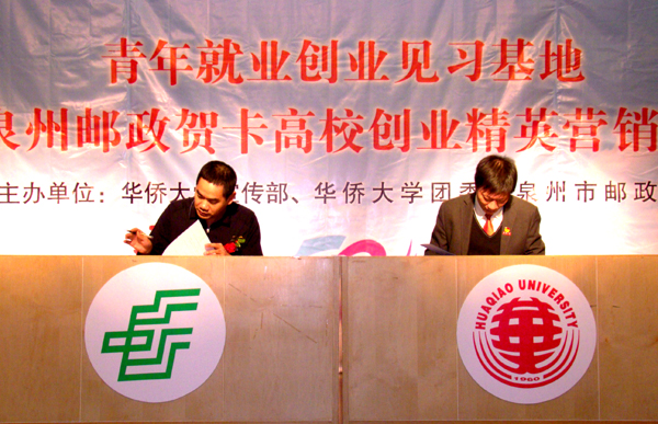 会上,校团委副书记陈世卿和泉州市邮政局签署了《青年就业创业见习基地合同》,并代表福建团省委为泉州市邮政局授牌。