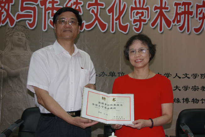 辅仁大学宗教学系主任黄怀秋教授还受聘必赢客座教授,张禹东副校长为其颁发聘书。