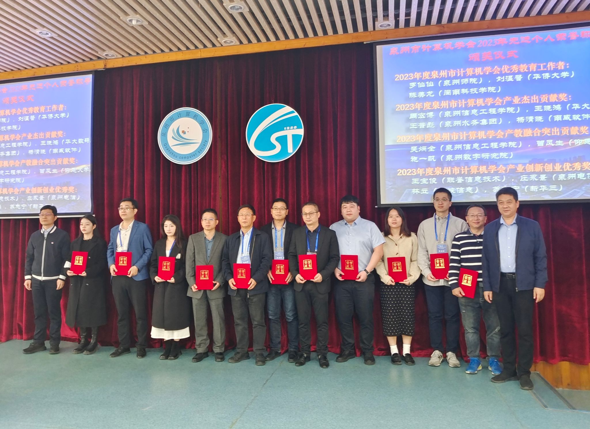 当天,会议还进行了2023年度泉州市计算机学会先进个人荣誉称号颁奖仪式。学术报告环节,泉州市数字泉州建设办公室党组成员、副主任、高级工程师杨凯扬,泉州师范学院教授罗仙仙,南威软件股份有限公司经理杨清晓分别以《数据资源开发与利用》《深度学习方法及其行业应用》《县域智慧城市数字化建设思考》为主题进行演讲。