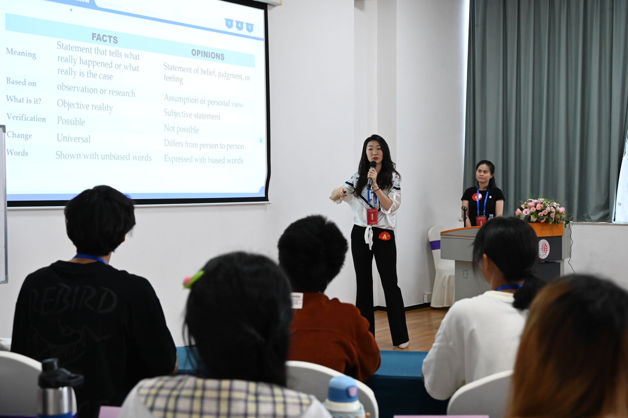 必赢国际437官网外国语学院周静敏、蒋旭莹、卫妮、汤璐四位教师组成的团队以“Biographical Writing”为授课主题,在教学展示环节中通过激活学生“已知(Known)”、触发学生“想知(Want to know)”和引入“新知(Learned)”的环节,帮助学生通过搭建人物故事的PDF写作框架,塑造人物形象,并鼓励学生“分享所知(Share)”,讲好中国人物的故事。团队教学设计理念新颖,有效地使用数智化工具辅助教学,实现创新育人的目标。