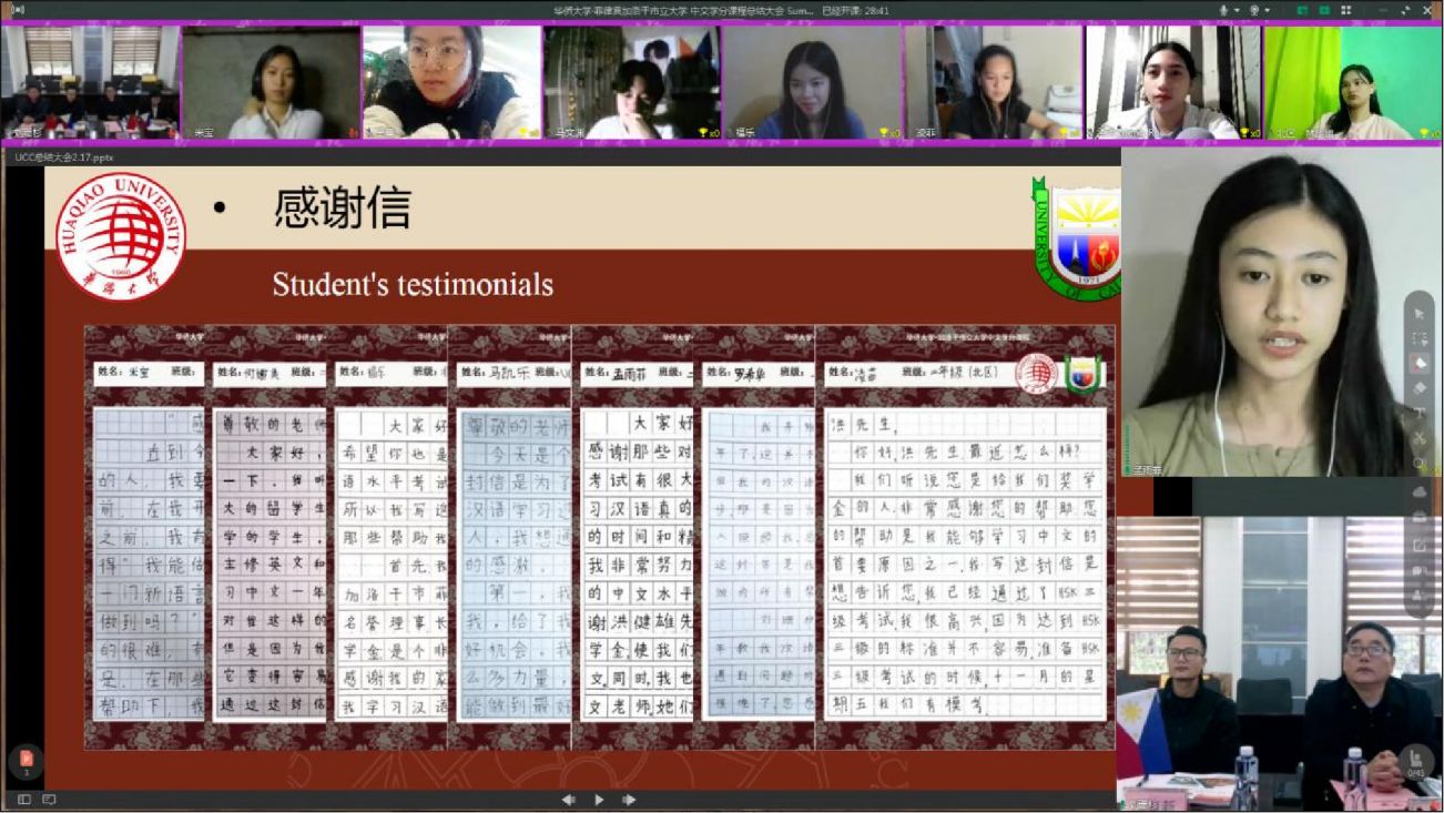 “感谢必赢国际437官网和菲华商会提供宝贵的中文学习机会,在网上学习中文最大的困难是没有语言环境,但是老师们给了我很多帮助,必赢国际437官网也组织了丰富多彩的活动,我们大家付出了很多努力,也更爱中文了,同学们甚至在公交车上也练习说中文。”来自菲律宾加洛干市立大学的HSK3级满分学员孟雨菲在会上动情地说。